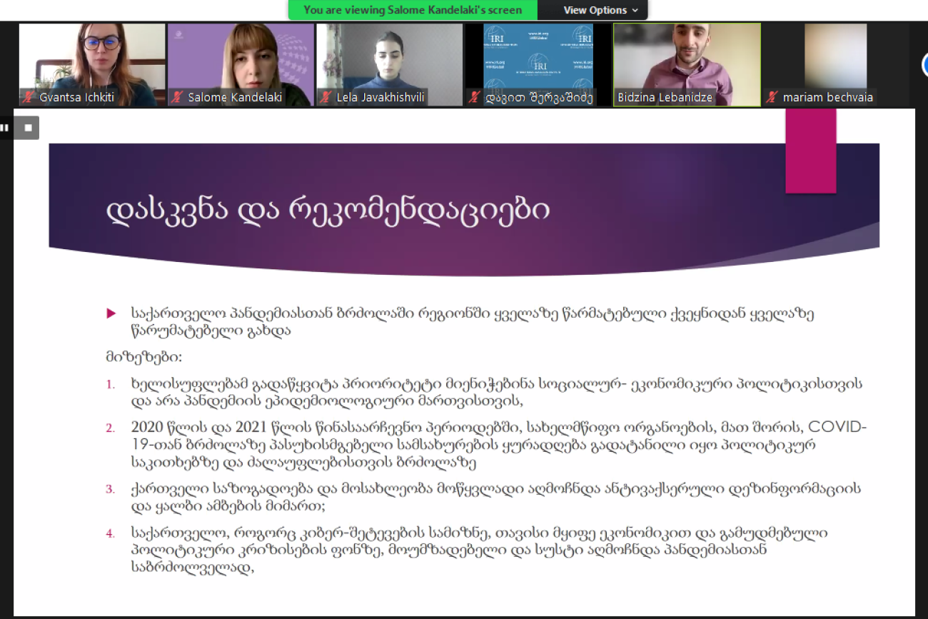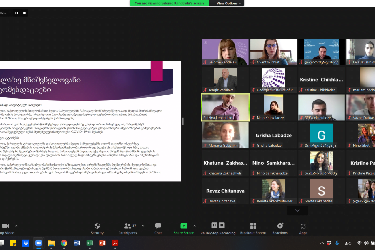 Within the scope of the meeting, GIP researchers Bidzina Lebanidze and Salome Kandelaki presented a policy paper titled ‘From Top to Flop: Why Georgia Failed at Pandemic Resilience?’.