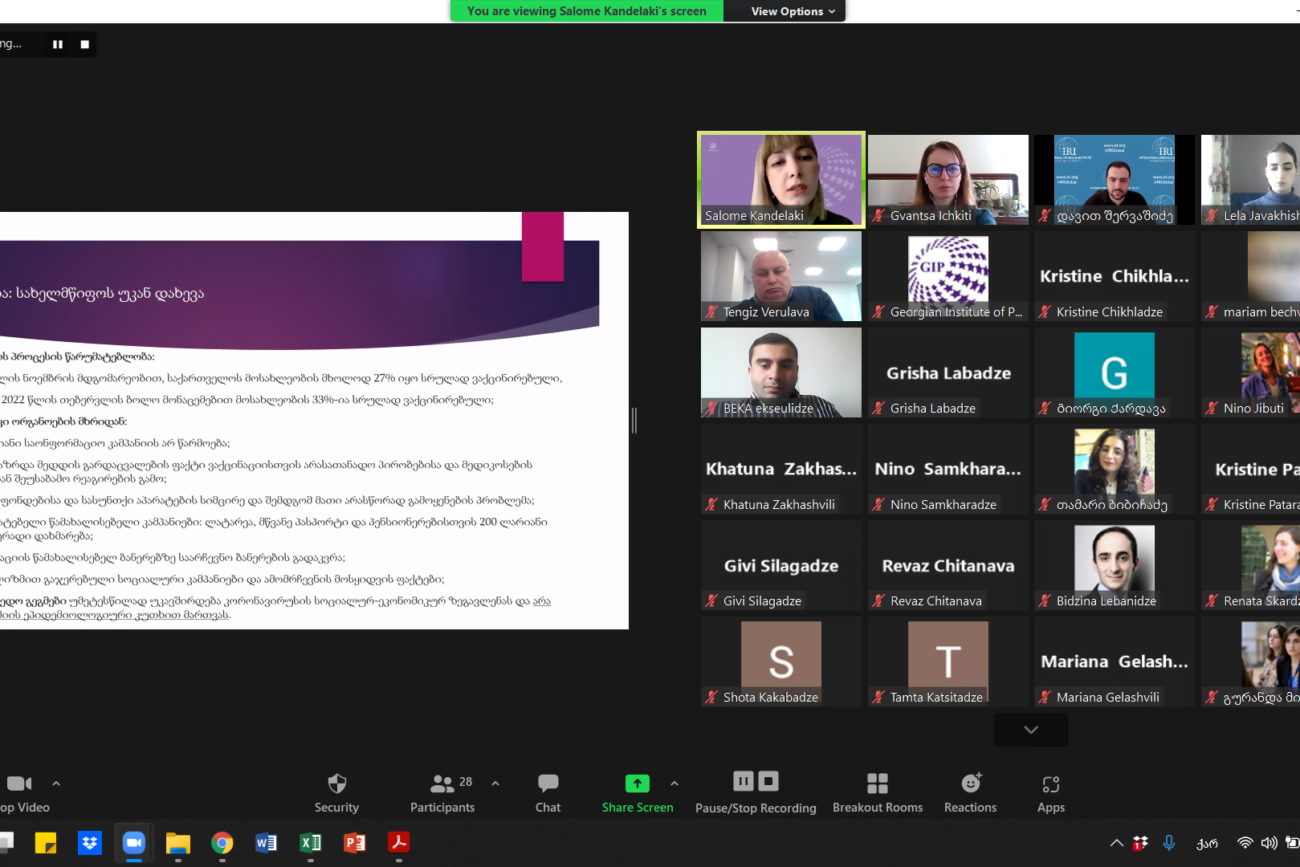 After the presentation of the document, public health experts participated in an online discussion: Ms. Khatuna Khazashvili, Head of the Department of Communicable Diseases, National Center for Disease Control and Public Health (NCDC) and Mr. Tengiz Verulava, MD, PhD, Medicine and Healthcare Management, Caucasus University. The event ended with the Q&A format, and the attending audience had the opportunity to find answers to their questions.