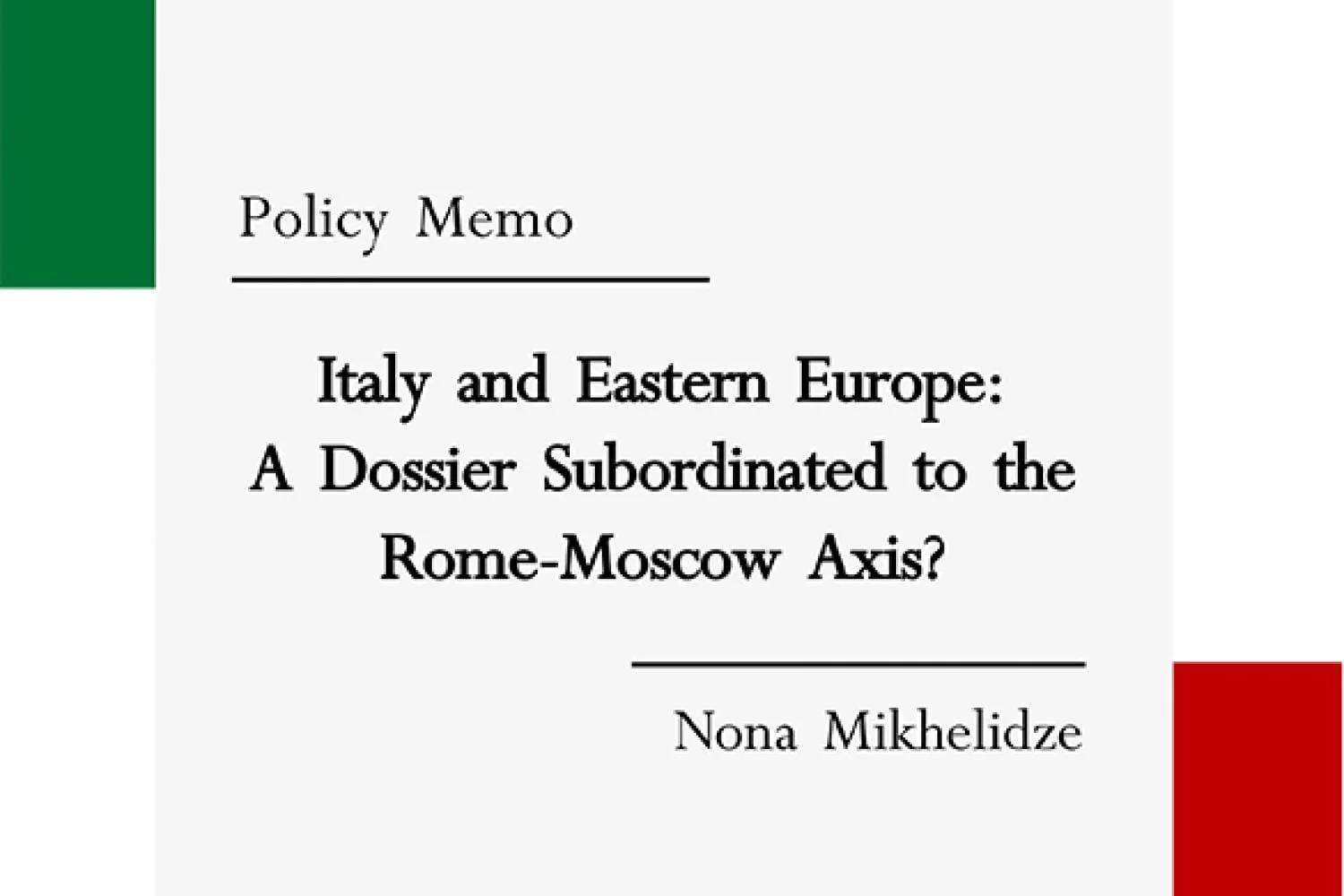 Italy and Eastern Europe: A Dossier Subordinated to the Rome-Moscow Axis?