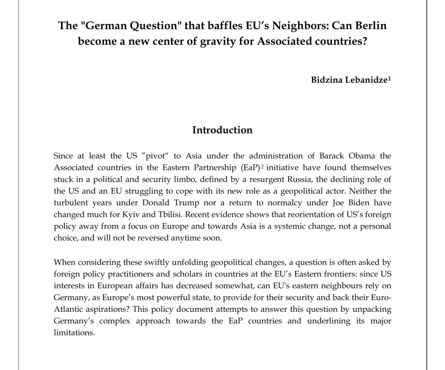 Uncategorized 06 Jul 2021 The “German Question” that Baffles EU’s Neighbors: Can Berlin Become a New Center of Gravity for Associated Countries?Since at least the US ”pivot“ to Asia under the administration of… Bidzina Lebanidze