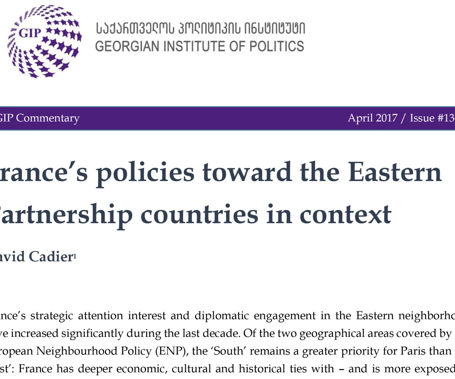 Uncategorized 11 Apr 2017 France’s policies toward the Eastern Partnership countries in contextFrance’s strategic attention interest and diplomatic engagement in the Eastern neighborhood have… GIP