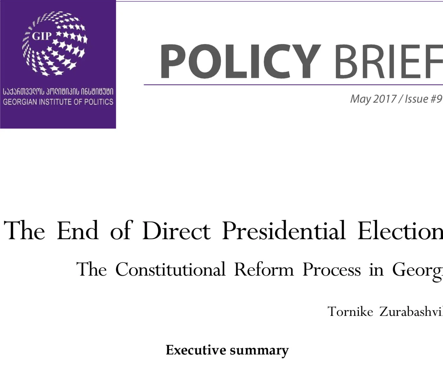 Uncategorized 15 May 2017 The End of Direct Presidential Elections – The Constitutional Reform Process in GeorgiaAs part of the ongoing constitutional reform process, the ruling Georgian Dream-Democratic… GIP