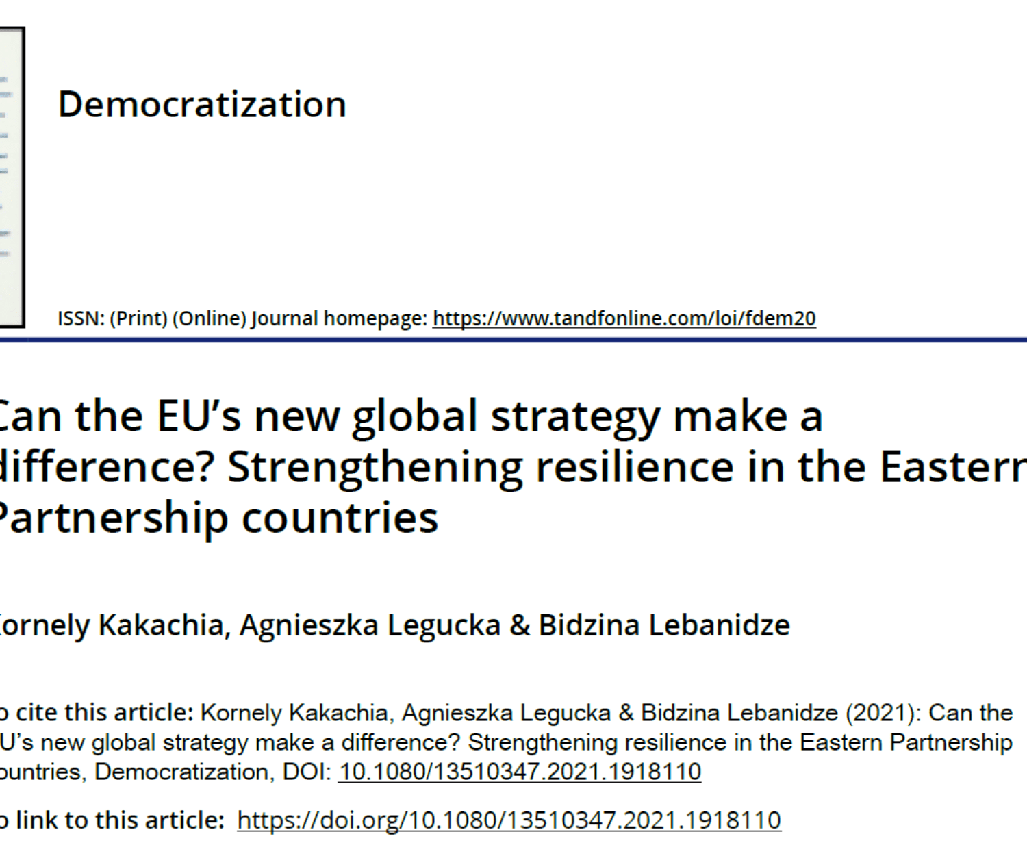 News 29 Apr 2021 Can the EU’s new global strategy make a difference? Strengthening resilience in the Eastern Partnership countriesAuthors: Kornely Kakachia, Agnieszka Legucka & Bidzina Lebanidze Originally published by: www.tandfonline.com GIP