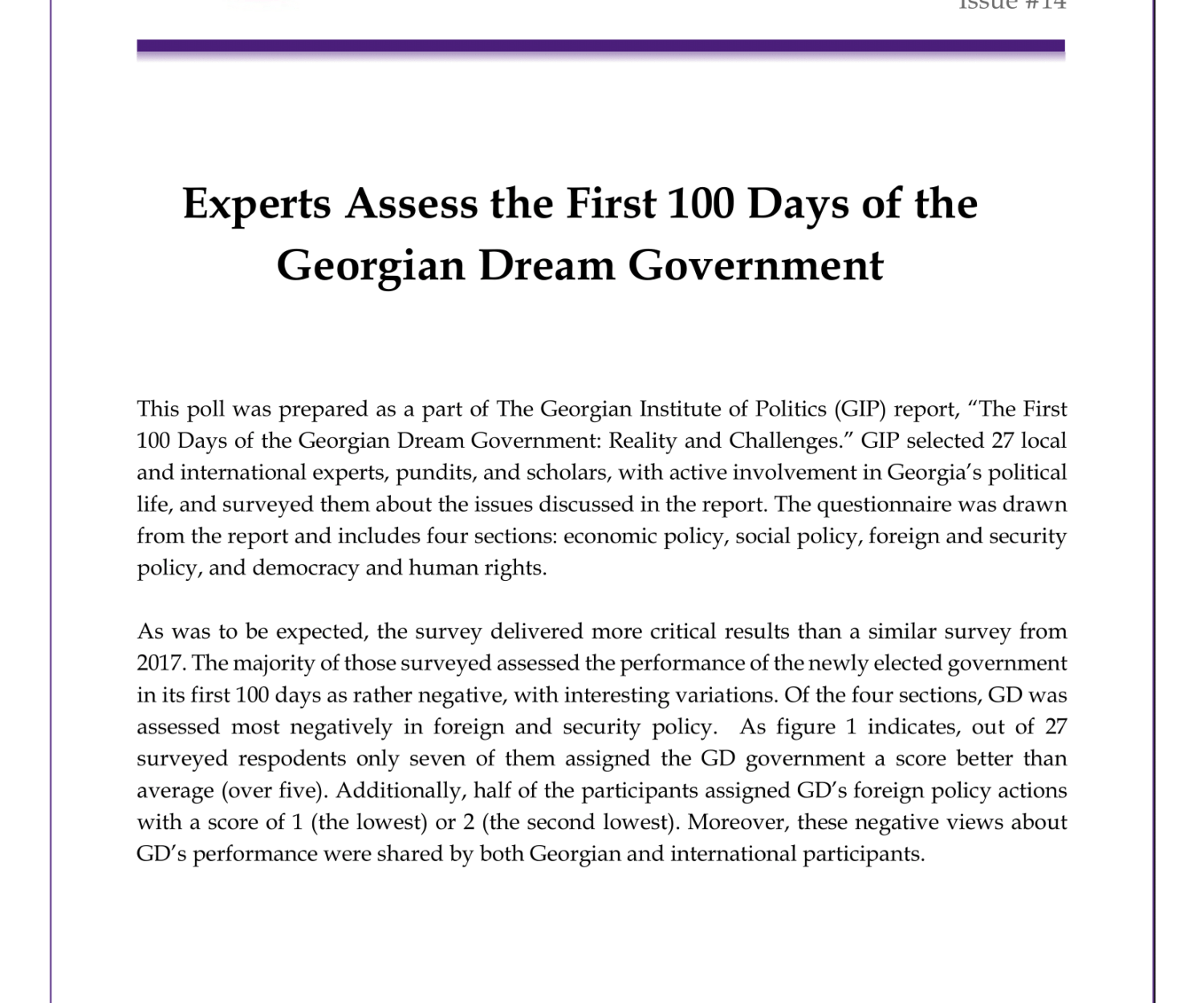 Uncategorized 23 Apr 2021 Experts Assess the First 100 Days of the Georgian Dream GovernmentGIP Expert Polls / Issue #14 GIP