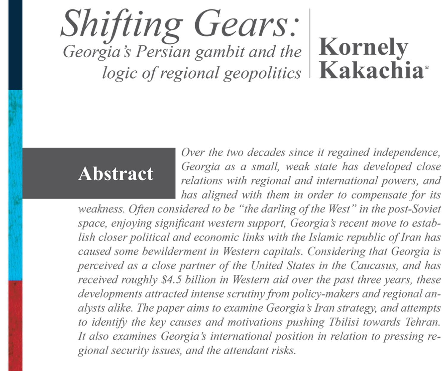 Uncategorized 16 Mar 2012 Shifting Gears: Georgia’s Persian gambit and the logic of regional geopoliticsThe paper aims to examine Georgia’s Iran strategy, and attempts to identify… Kornely Kakachia