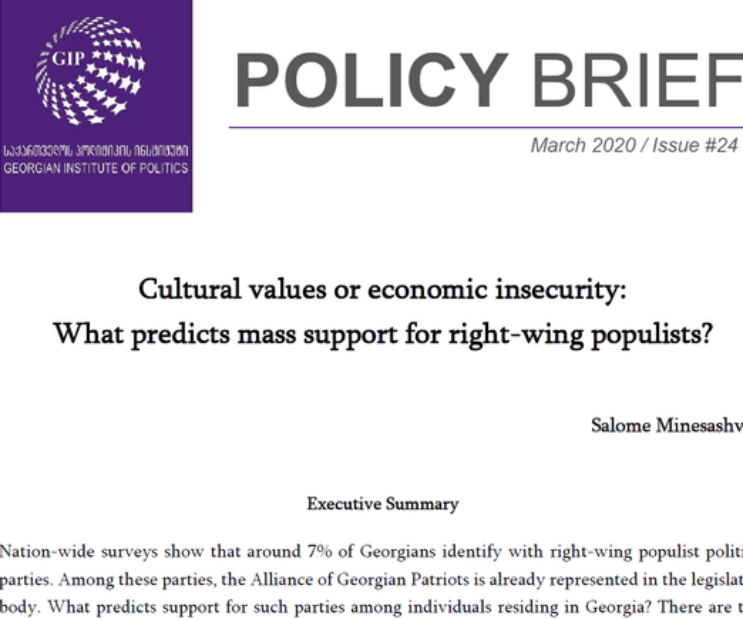 Uncategorized 06 Mar 2020 Cultural values or economic insecurity: What predicts mass support for right-wing populists?Nation-wide surveys show that around 7% of Georgians identify with right-wing populist… Salome Minesashvili