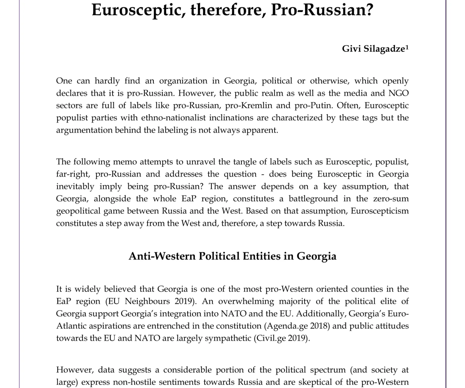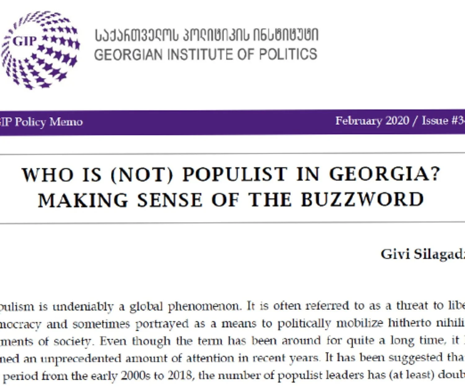 Uncategorized 22 May 2020Is Georgian Populism Eurosceptic?he proliferation of populist actors in the political systems of European countries… GIP