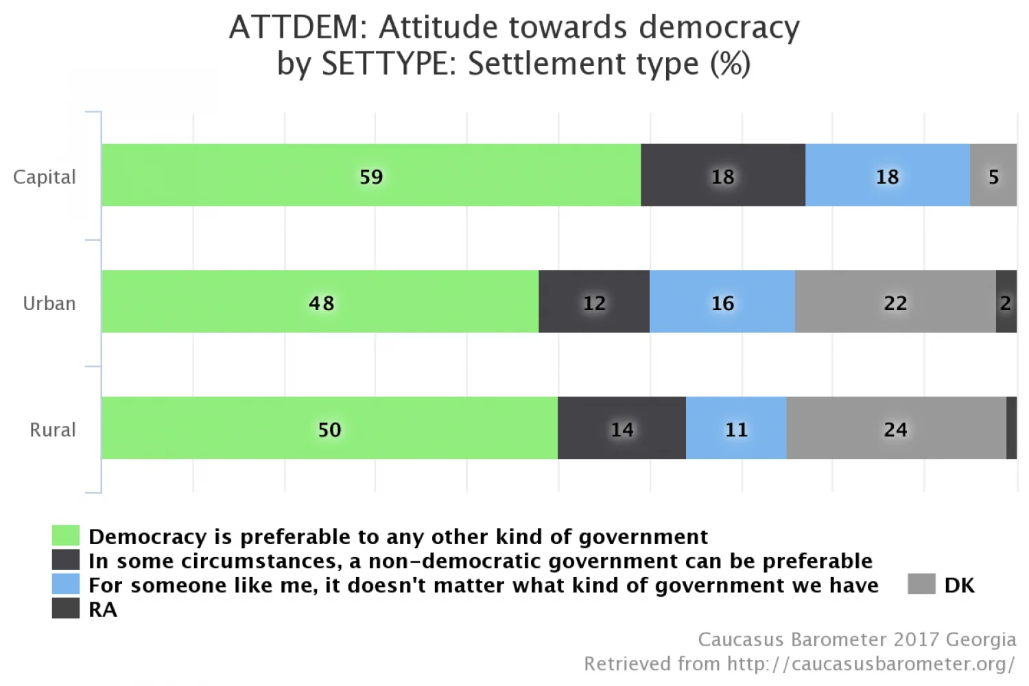 Chart 1: Support for democracy in Georgia by settlement type