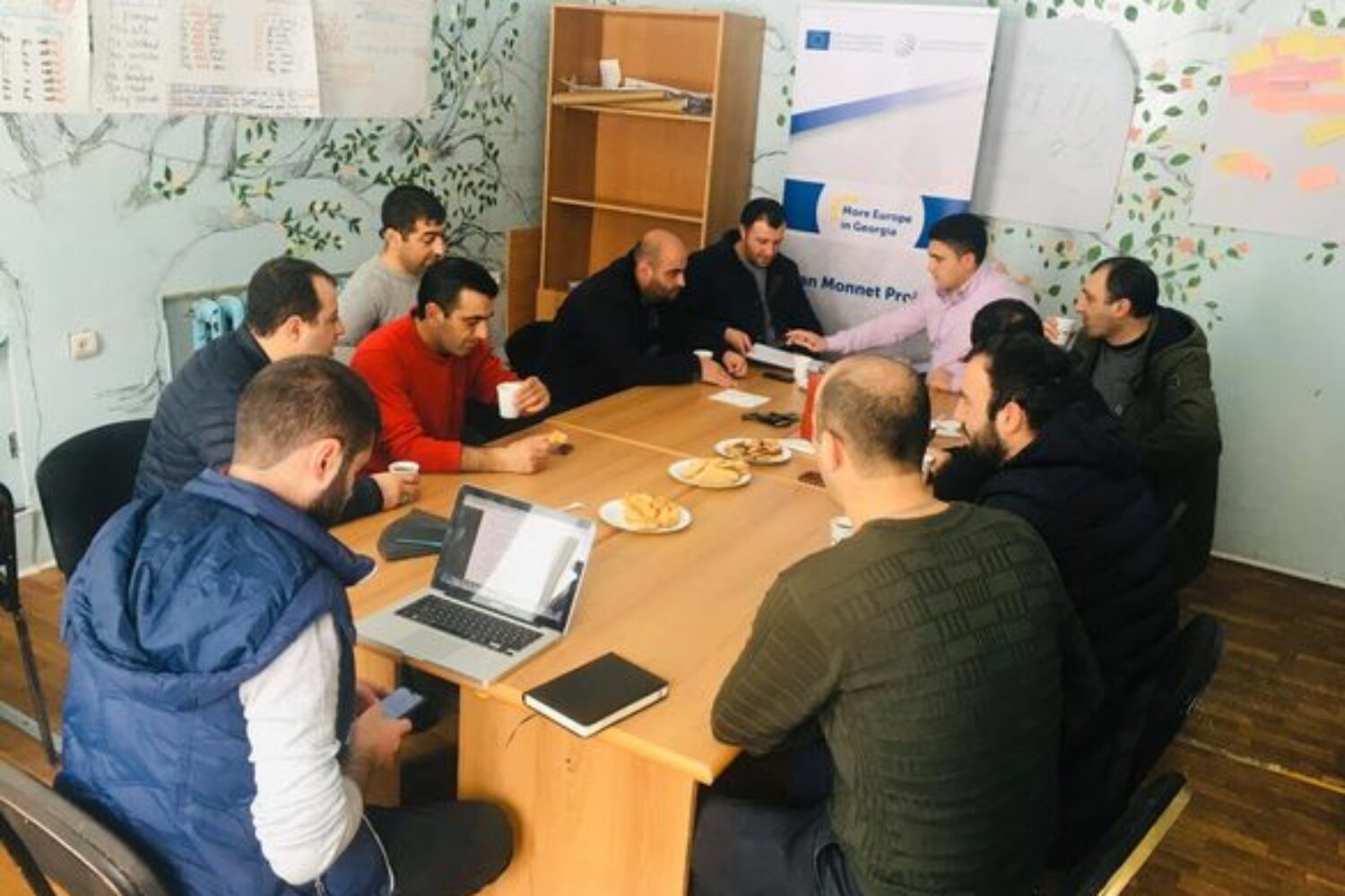 As part of the research activity of the Jean Monnet project “Promote and Act for Europe”, Georgian Institute of Politics (GIP) held the second focus group in Ninotsminda municipality of the Samtskhe-Javakheti region. The focus group was conducted with male participants both with and without higher education. Overall, 10 representatives of the local ethnic minority participated in the all-male focus group. Out of these, 4 were below the age of 30 and the rest above 30. The focus group was conducted in Armenian language and was recorded with the use of a special recorder. The facilitator of the focus group was Norik Gasparyan, who assists the project team in conducting the research activities and is responsible for mobilizing the members of the local community.