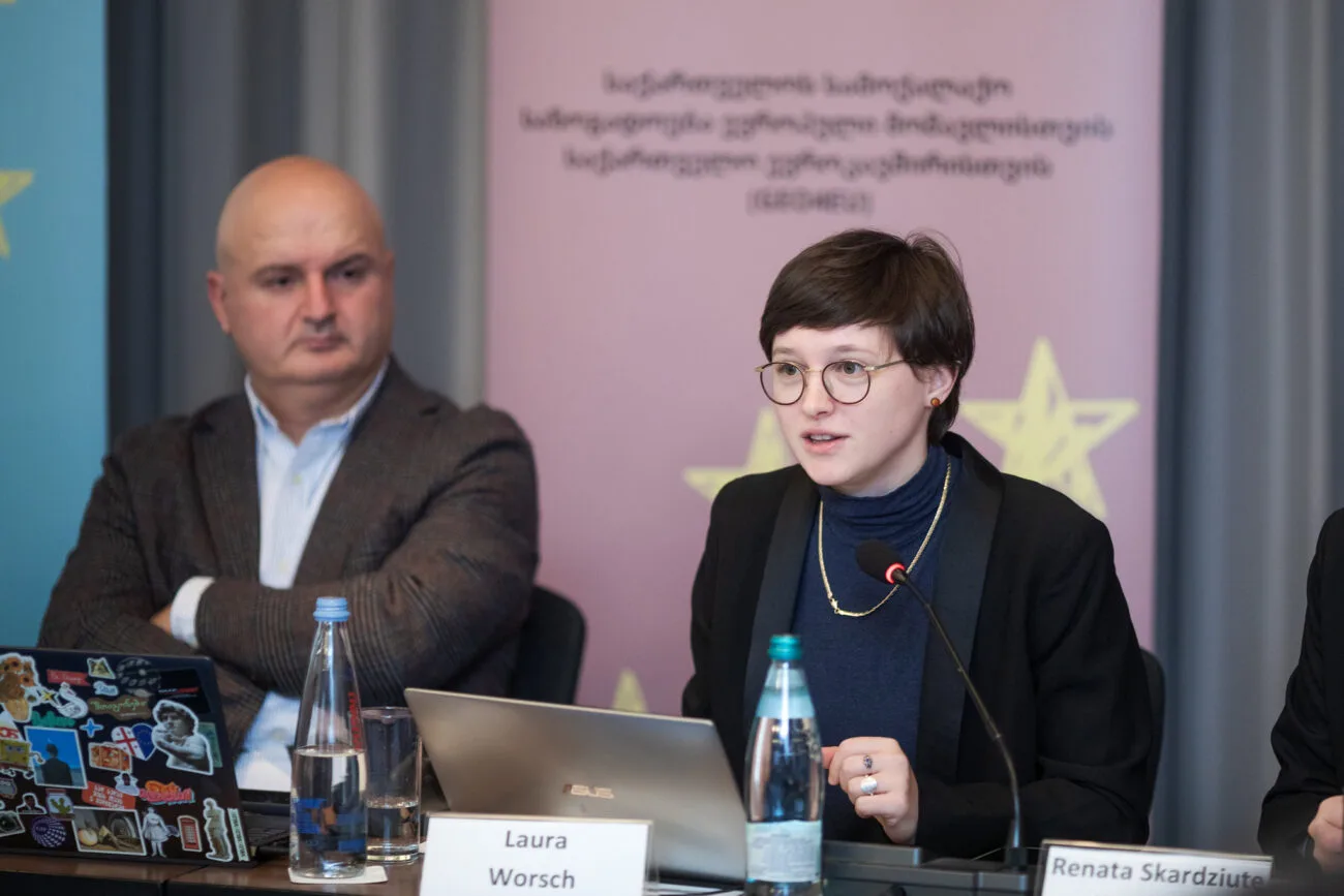 The agenda featured a panel of distinguished speakers – Sandro Baramidze (Transparency International Georgia), Nata Koridze (Civil.ge), Veronika Pfeilschifter (University of Jena), Dr. Franziska Smolnik (German Institute for International and Security Affair)