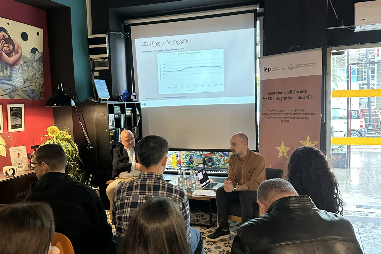 The discussion was focused on countering anti-EU narratives, raising awareness about EU policies toward Georgia, and assessing public perceptions of European integration. Most importantly, it explored the relationship between democracy, European integration, and socio-economic challenges. The dialogue centered on why democracy matters and what it truly means in the Georgian context.