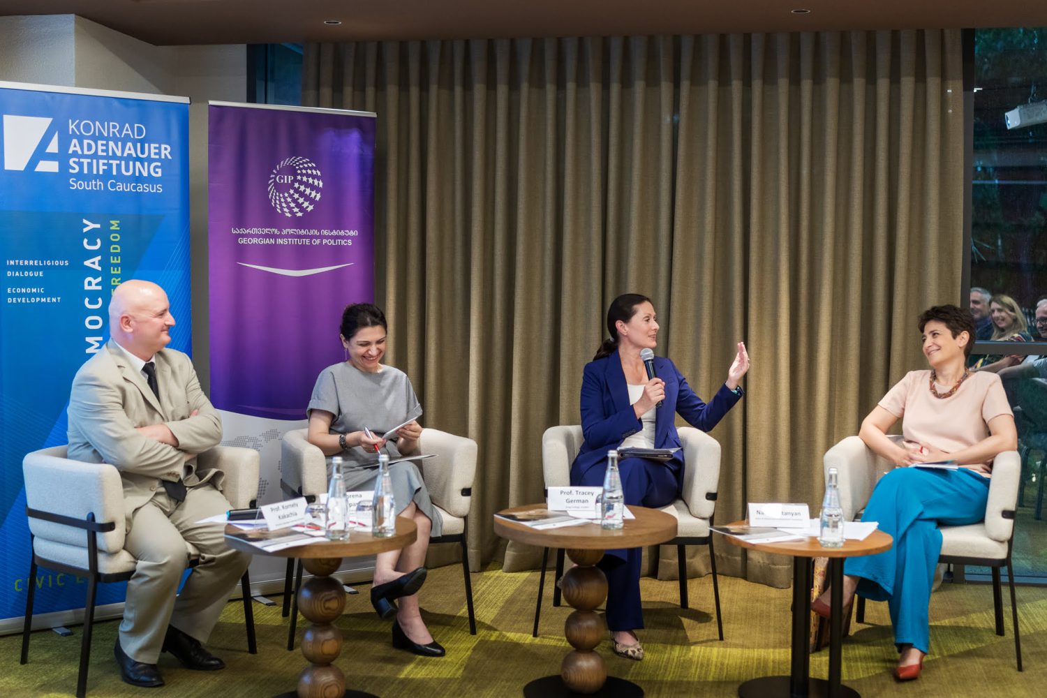 The panel included Naira Sultanyan, Head of Democracy Development Foundation; Murad Nasibov, Justus-Liebig University of Giessen, who participated virtually; and Shorena Lortkipanidze, Founder and a Board Member of the Civil Council on Defense and Security.