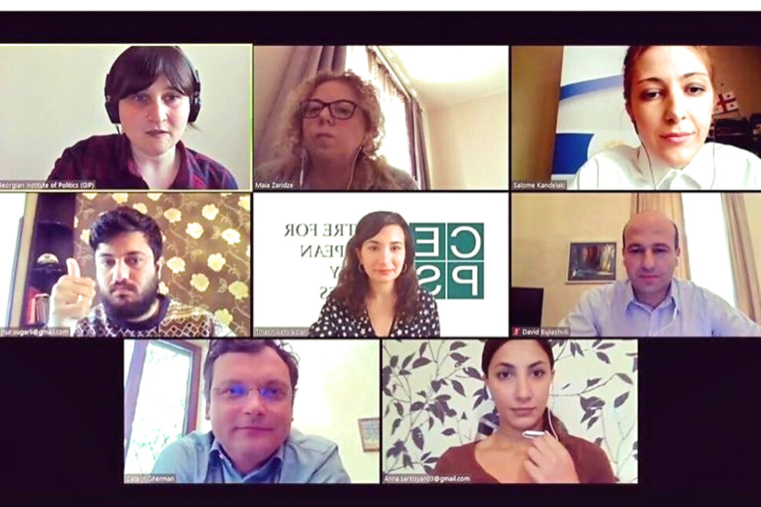 The final panelist of the online discussion was Dr. Tinatin Akhvlediani, Researcher at CEPS’ Foreign Policy unit and Ph.D. in Economics, University of Warsaw. As she mentioned, the amount which was provided to Georgia within the EaP format is the largest among those provided for the EaP countries. This decision was conditioned by effective utilization of grants and by the progress of implementation of the EU-Georgia Association Agreement. The debt amounting to 150 million that was provided additionally by the EU will be directed to strengthening the macro-financial sustainability of the country. Dr. Akhvlediani outlined a very important factor that while providing the debt a memorandum is usually signed, which defines obligations including the issues of the rule of law, protection of human rights, supporting pluralism in the parliament This provides guarantees that in the time of crisis, the focus is not solely on economic support of the state but also on such fundamental priorities as democratic governance and human rights.
