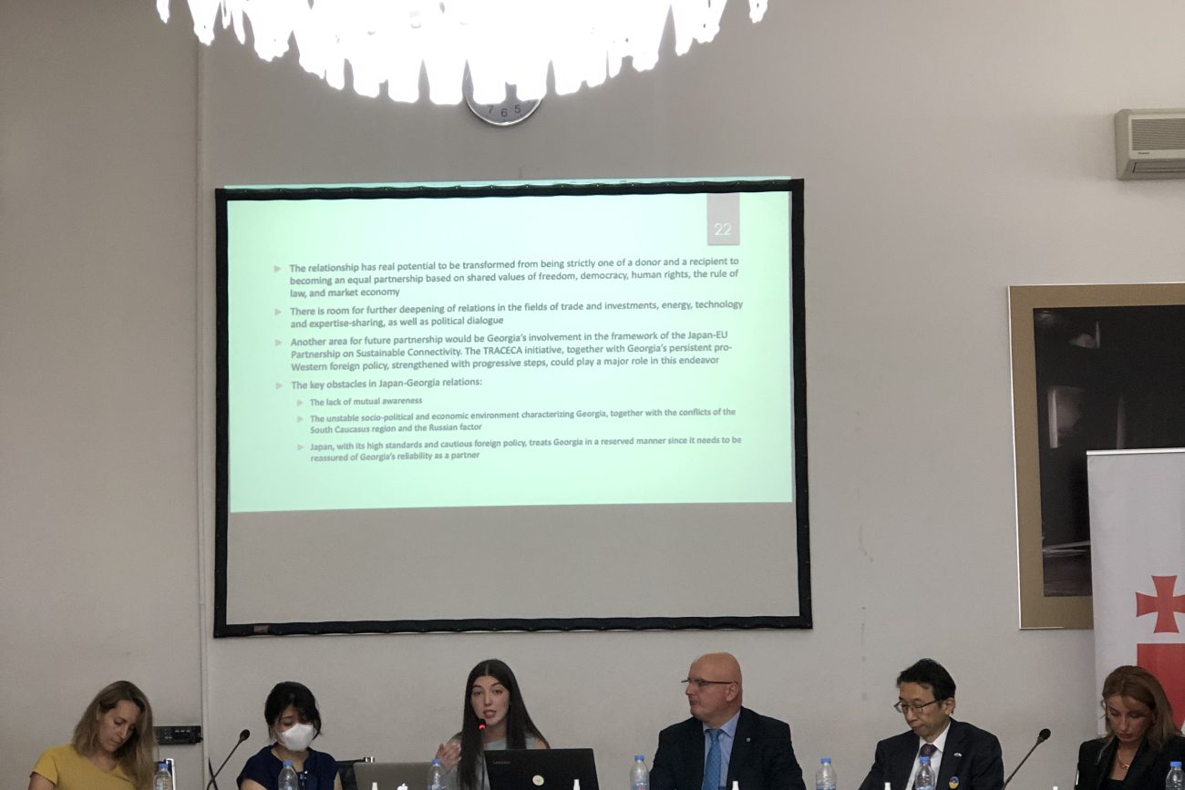 ღონისძიება მიზნად ისახავდა იაპონიასა და საქართველოს შორის პარტნიორობის 30 წლის მიმოხილვას, არსებული მიღწევების შეფასებასა და მომავალი თანამშრომლობის პერსპექტივების განხილვას. დისკუსია წარიმართა პოლიტიკური ნარკვევის გარშემო, რომელიც დოქტ. მარიამ ბიბილაშვილმა, ცუკუბას უნივერსიტეტის იაპონური და ევრაზიული სწავლებების სპეციალური პროგრამის აფილირებულმა მკვლევარმა მოამზადა (გაეცანით ნაშრომს). დოკუმენტის მიხედვით, საქართველო-იაპონიის ურთიერთობების მთავარი გამოწვევას წარმოადგენს ის, რომ საქართველოს მხრიდან საჭიროა იაპონია-საქართველოს შორის აქტიური სავაჭრო ურთიერთობების განვითარებისთვის საჭირო ნიადაგის მომზადება და ბიზნესგარემოს გაუმჯობესება. ასევე, იაპონია-ევროკავშირს შორის თანამშრომლობის პროცესში საქართველოს პოზიციონირება და მის სანდო აქტორად ჩამოყალიბება.