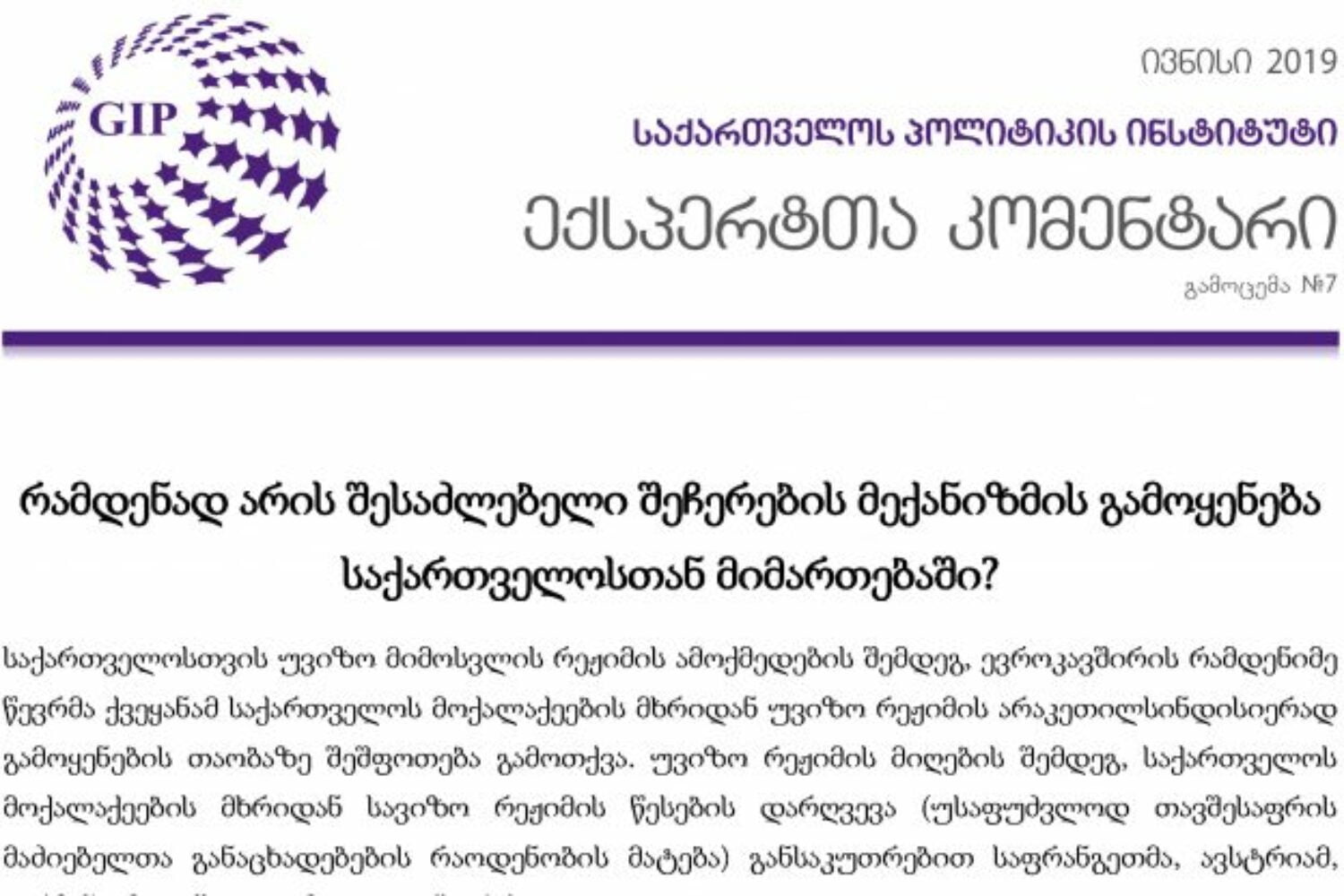 ჰოლანდიის მთავრობის ბოლოდროინდელმა გადაწყვეტილებამ, მიემართა ევროკომისიისთვის ალბანელებისთვის უვიზო მიმოსვლის შეჩერების შესახებ, ეს საკითხი კიდევ უფრო მნიშვნელოვანი გახადა. შესაბამისად, საქართველოს პოლიტიკის ინსტიტუტის თხოვნით, ექსპერტებმა გერმანიიდან, ბელგიიდან, ნიდერლანდების სამეფოდან და საქართველოდან მიმოიხილეს საქართველოსთან მიმართებაში შეჩერების მექანიზმის ამოქმედების საკითხი. კერძოდ, ექსპერტებმა უპასუხეს შემდეგ კითხვებს: