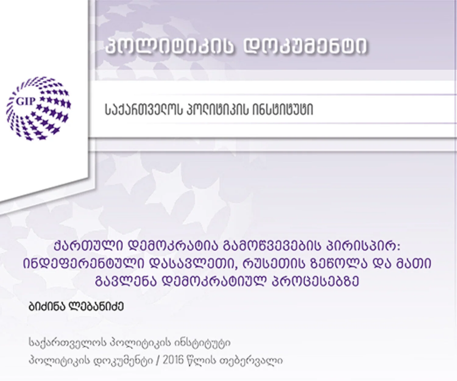კატეგორიის გარეშე 03 მარ 2016 ქართული დემოკრატია გამოწვევების პირისპირ: ინდეფერენტული დასავლეთი, რუსეთის ზეწოლა და მათი გავლენა დემოკრატიულ პროცესებზექართველებს შორის ანტიიმპერიული და ანტირუსული განწყობები ისევ დომინანტურია GIP