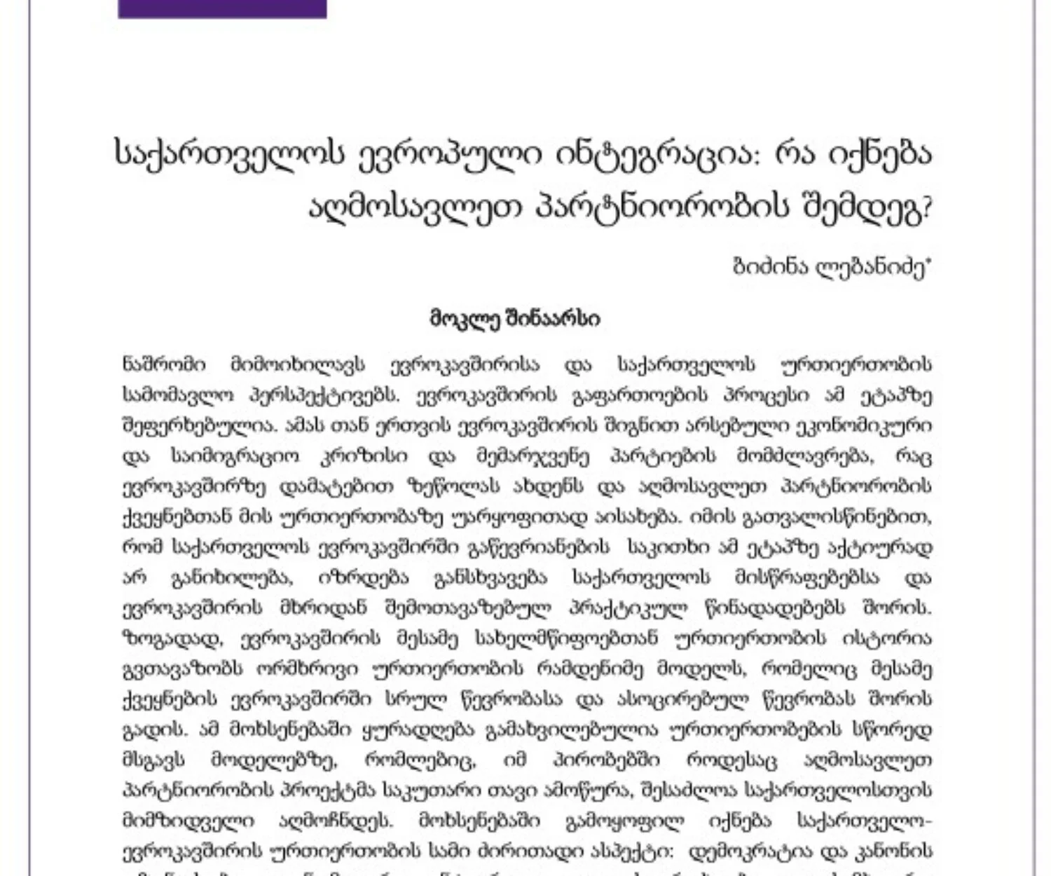 კატეგორიის გარეშე 25 აპრ 2017 საქართველოს ევროპული ინტეგრაცია: რა იქნება აღმოსავლეთ პარტნიორობის შემდეგ?ნაშრომი მიმოიხილავს ევროკავშირისა და საქართველოს ურთიერთობის სამომავლო პერსპექტივებს. ევროკავშირის გაფართოების პროცესი ამ… ბიძინა ლებანიძე