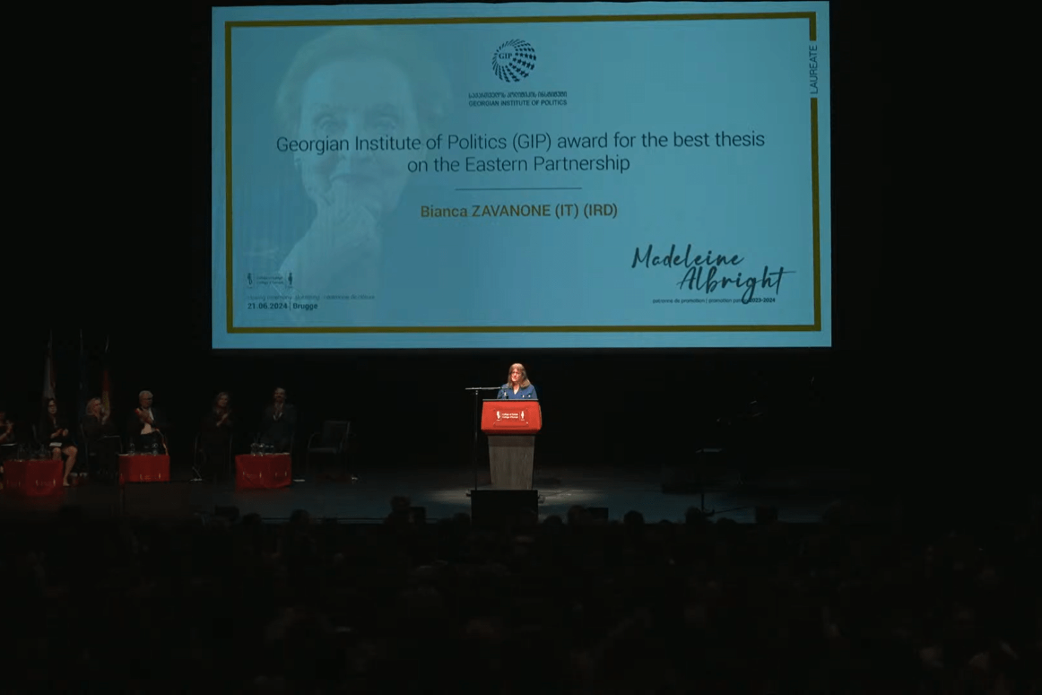 წელს, 21 ივნისს გამართულ ევროპის კოლეჯის 2023-2024 სასწავლო წლის დამთავრების ცერემონიაზე GIP-ის პრიზი გადაეცა ევროპის კოლეჯის სტუდენტს, ბიანკა ცავანონეს აღმოსავლეთ პარტნიორობის (EaP) შესახებ საუკეთესო სამაგისტრო ნაშრომისთვის.