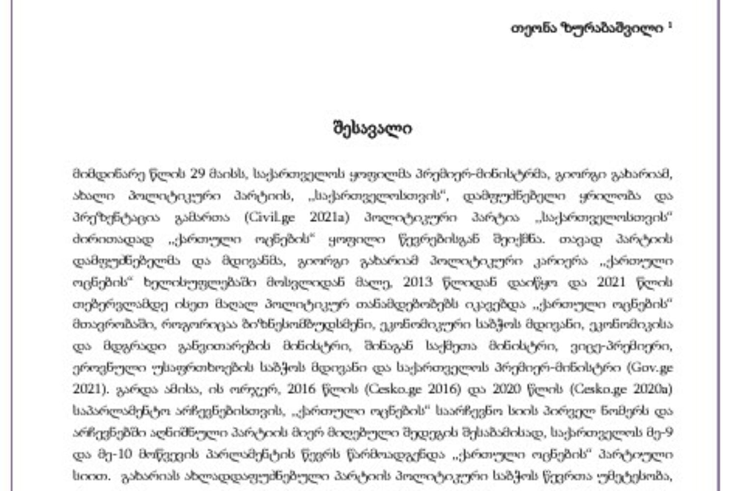 მემორანდუმში განხილული სხვა ,,განაყოფი“ პარტიების გამოცდილებამ აჩვენა, რომ მნიშვნელოვანი ელექტორალური წარმატებისთვის საჭიროა, ,,განაყოფმა“ პარტიამ დამოუკიდებელი პარტიული იდენტობა ადრეულ ეტაპზე ჩამოაყალიბოს და ამ იდენტობის მის მთავარ პოლიტიკურ მიზანთან სინქრონიზაცია მოახდინოს. იმ შემთხვევაში, თუ გიორგი გახარიას ,,განაყოფი“ პარტიის შექმნის მიზანი, ბიძინა ივანიშვილის გეგმის მიხედვით დიდი ოპოზიციური პარტიების პოლიტიკური ავანსცენიდან გაყვანა და მათ ალტერნატიულ ძალად ჩამოყალიბებაა, მოცემული ვითარება ამ გეგმის სასარგებლოდ არ მეტყველებს.ისეთი ფაქტორების კომბინაციამ, როგორიცაა პოლიტიკური მემკვიდრეობა, ლიდერის იმიჯი და მეინსტრიმული პარტიული პოზიციები, ნაკლებად სავარაუდოა, ქართველი ოპოზიციური ამომრჩევლის ტრადიციულ არჩევანში რევოლუციური გარდატეხა შეიტანოს. იმ შემთხვევაში, თუ პარტია ,,საქართველოსთვის“ მიზანს ერთ-ერთ სერიოზულ ოპოზიციურ ძალად პოზიციონირება წარმოადგენს, ამისთვის საჭიროა, პარტიამ, კონკრეტულ, პრობლემურ საკითხებზე აპელირების მეშვეობით რაც შეიძლება, მალე გამიჯნოს საკუთარი თავი ,,ქართული ოცნებისგან”. თუმცა, უნდა აღინიშნოს, რომ ქვეყანაში ძალიან მცირეა ისეთი ,,განაყოფი” პარტიების რაოდენობა, რომელთა გამოცდილებაზე დაყრდნობითაც, ქვეყანაში ასეთი ტიპის პარტიების ელექტორალური პერსპექტივის განმსაზღვრელი ფაქტორების შესახებ საუბარი მტკიცებით ფორმაშია შესაძლებელი. დრო გვაჩვენებს, დამოუკიდებელი პარტიული იდენტობის გარდა, კიდევ რა გარემოებებმა შეიძლება იმოქმედოს პარტია ,,საქართველოსთვის” სამომავლო წარმატებასა თუ წარუმატებლობაზე.