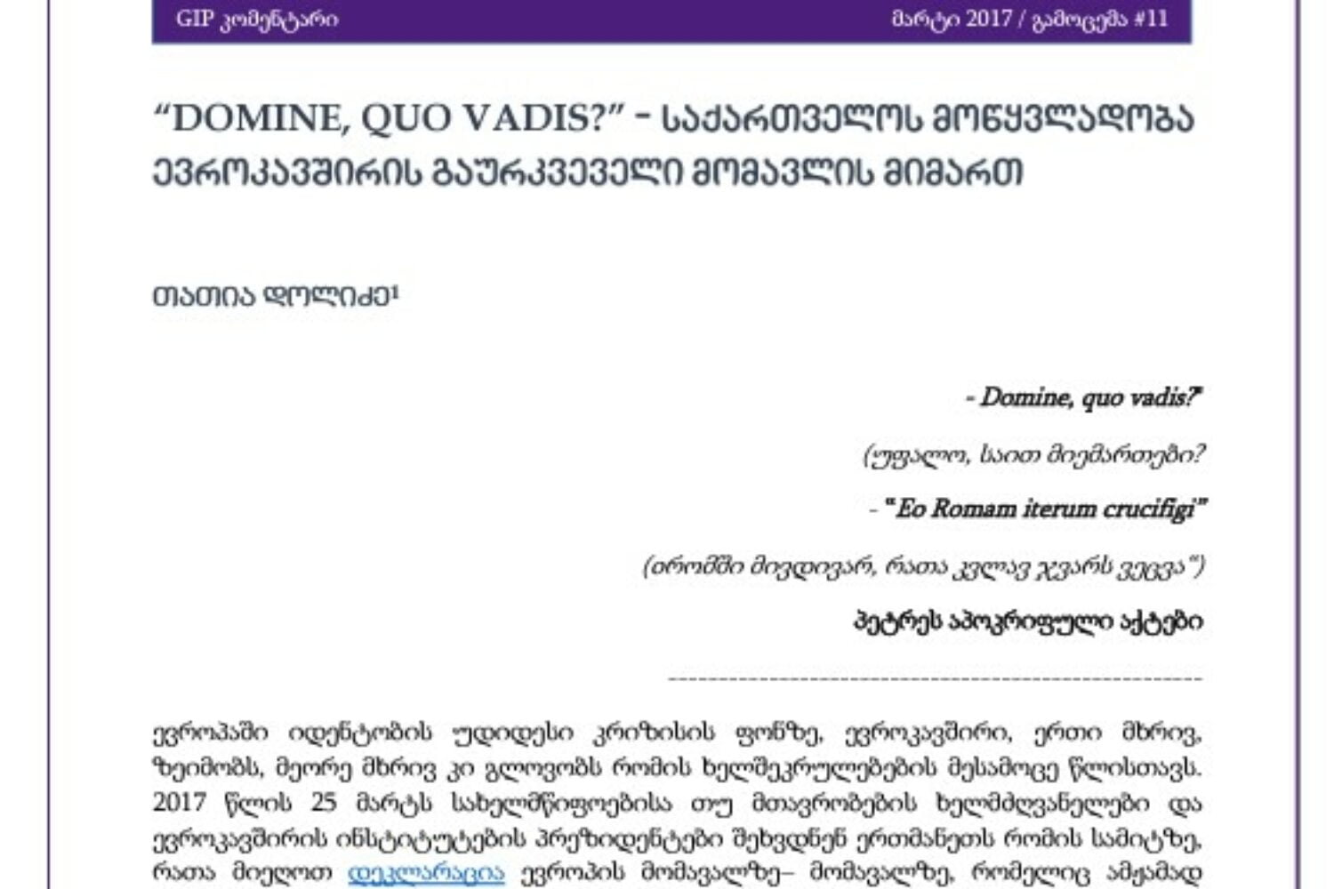 ევროპაში იდენტობის უდიდესი კრიზისის ფონზე, ევროკავშირი, ერთი მხრივ, ზეიმობს, მეორე მხრივ კი გლოვობს რომის ხელშეკრულებების მესამოცე წლისთავს. 2017 წლის 25 მარტს სახელმწიფოებისა თუ მთავრობების ხელმძღვანელები და ევროკავშირის ინსტიტუტების პრეზიდენტები შეხვდნენ ერთმანეთს რომის სამიტზე, რათა მიეღოთ დეკლარაცია ევროპის მომავალზე– მომავალზე, რომელიც ამჟამად გაურკვეველია.