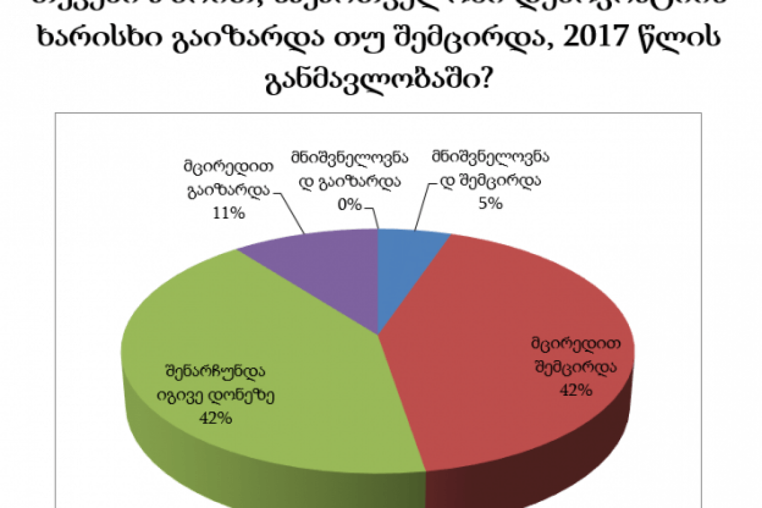 გრაფიკი 1: თქვენი აზრით, საქართველოში დემოკრატიის ხარისხი გაიზარდა თუ შემცირდა, 2017 წლის განმავლობაში?
