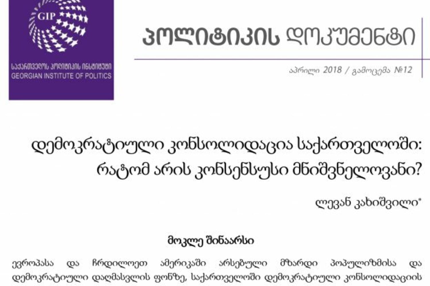 ევროპასა და ჩრდილოეთ ამერიკაში არსებული მზარდი პოპულიზმისა და დემოკრატიული დაღმასვლის ფონზე, საქართველოში დემოკრატიული კონსოლიდაციის ნაკლებობა მნიშვნელოვან გამოწვევად იქცა. მიიჩნევა, რომ ევროკავშირის პირობითობის პოლიტიკა საქართველოში დემოკრატიზაციისა და რეფორმების დღის წესრიგში პროგრესის მისაღწევად მთავარი მამოძრავებელი ძალაა. თუმცა, მნიშვნელოვანია, რომ მსოფლიოში არსებული გაურკვევლობა საქართველოში მიმდინარე დემოკრატიული კონსოლიდაციის პროცესს ზიანს არ აყენებდეს, განსაკუთრებით მაშინ, როდესაც, როგორც ჩანს, საქართველომ ევროკავშირისგან ყველაზე მნიშვნელოვანი წამახალისებელი ჯილდო უკვე მიიღო. საქართველოს პოლიტიკურ ელიტასა და ქართულ საზოგადოებას შორის ლიბერალური დემოკრატიული ღირებულებებისა და დემოკრატიის მნიშვნელობაზე კონსენსუსის არსებობა, დემოკრატიული რეფორმების შიდა მხარდაჭერის განგრძობითობისა და ქვეყნის განვითარებისთვის მნიშვნელოვან ფაქტორს წარმოადგენს. თუმცა, როგორც ჩანს, საქართველოში ამგვარი კონსენსუსის ნაკლებობაა. ამ მდგომარეობის დაძლევა ისეთი მნიშვნელოვანი აქტორების მიერ უნდა მოხდეს, როგორებიც არიან პოლიტიკური პარტიები, სამოქალაქო საზოგადოება, ევროკავშირი და ა.შ. წინამდებარე დოკუმენტი კონსენსუსის ნაკლებობის პრობლემას ეხება და ამტკიცებს, რომ საზოგადოებასთან კომუნიკაციის დროს საქართველოში არსებულმა ძირითადმა პოლიტიკურმა პარტიებმა უნდა გაზარდონ თავიანთი ვალდებულება, გააძლიერონ მცდელობა და ყურადღება გაამახვილონ დემოკრატიულ ღირებულებებზე. სამოქალაქო საზოგადოება კი პოლიტიკურ პარტიებს ამ მიზნის მიღწევაში უნდა დაეხმაროს და დემოკრატიაზე კონსენსუსის მისაღწევად თავისი არხები გამოიყენოს. აღნიშნულ პროცესში დახმარება, საქართველოს სოციო-პოლიტიკურ ცხოვრებაში ღირებულებათა ცვლილების გაზრდილი მხარდაჭერის მეშვეობით, ევროკავშირსაც შეუძლია.