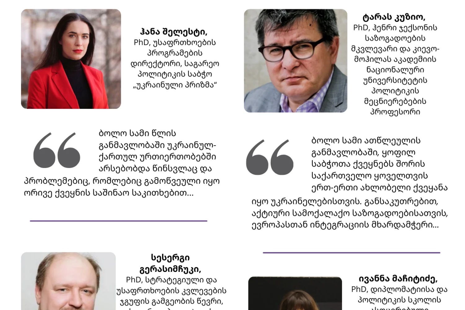 2022 წლის 16 აპრილს საქართველოს საპარლამენტო დელეგაციის უკრაინული ვიზიტის შემდეგ გაჩნდა მოლოდინი, რომ „გაუგებრობები“ ორ სტრატეგიულ პარტნიორს შორის მოგვარდებოდა. თუმცა, ეს არ მოხდა და დაძაბულობა ორ ქვეყანას შორის გრძელდება. აღნიშნულ საკითხთან დაკავშირებით, საქართველოს პოლიტიკის ინსტიტუტის (GIP) მოწვევით უკრაინელმა, კანადელმა და ქართველმა ექსპერტებმა უპასუხეს შემდეგ ორ კითხვას: