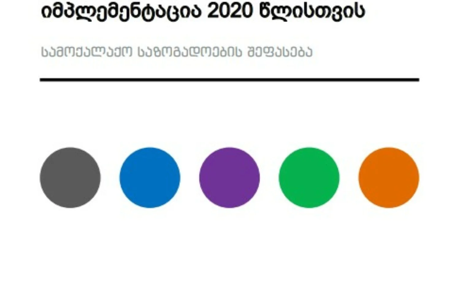 საქართველოს მიერ 2020 წლისთვის 20 შედეგის პროგრესის შესახებ პირველი დამოუკიდებელი ანგარიშის მომზადებაში, რომელიც აერთიანებს ქართული სამოქალაქო საზოგადოებისა და კვლევითი ორგანიზაციების ექსპერტიზას, მონაწილეობა მიიღო საქართველოში მოქმედმა 14-მა სამოქალაქო საზოგადოებრივმა ორგანიზაციამ. ანგარიში ფარავს აღმოსავლეთ პარტნირობის ხუთივე პრიორიტეტულ მიმართულებას: კომპლექსური შედეგები, უფრო ძლიერი ეკონომიკა, უფრო ძლიერი მმართველობა, უფრო მტკიცე კავშირები და უფრო ძლიერი საზოგადოება. თითოეული შედეგის მიმოხილვა მოიცავს 2020 წლისთვის 20 შედეგის იმპლემენტაციის პროცესში მიღწეული პროგრესის, შედეგებისა და დარჩენილი გამოწვევების ანალიზს. ანგარიში ასევე შეიცავს რეკომენდაციებს, რომელთა მიზანია აღნიშნული ჩარჩოს სარგებლის მაქსიმიზაცია და საქართველოსა და ევროკავშირის გადაწყვეტილების მიმღებ პირებთან აუცილებელი რეფორმების ადვოკატირება.