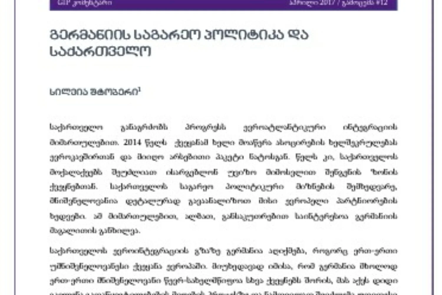 საქართველო განაგრძობს პროგრესს ევროატლანტიკური ინტეგრაციის მიმართულებით. 2014 წელს ქვეყანამ ხელი მოაწერა ასოცირების ხელშეკრულებას ევროკავშირთან და მიიღო არსებითი პაკეტი ნატოსგან. წელს კი, საქართველოს მოქალაქეებს შეუძლიათ ისარგებლონ უვიზო მიმოსვლით შენგენის ზონის ქვეყნებთან. საქართველოს საგარეო პოლიტიკური მიზნების შემხედვარე, მნიშვნელოვანია დეტალურად გავაანალიზოთ მისი ევროპელი პარტნიორების ხედვები. ამ მიმართულებით, ალბათ, განსაკუთრებით საინტერესოა გერმანიის მაგალითის განხილვა.