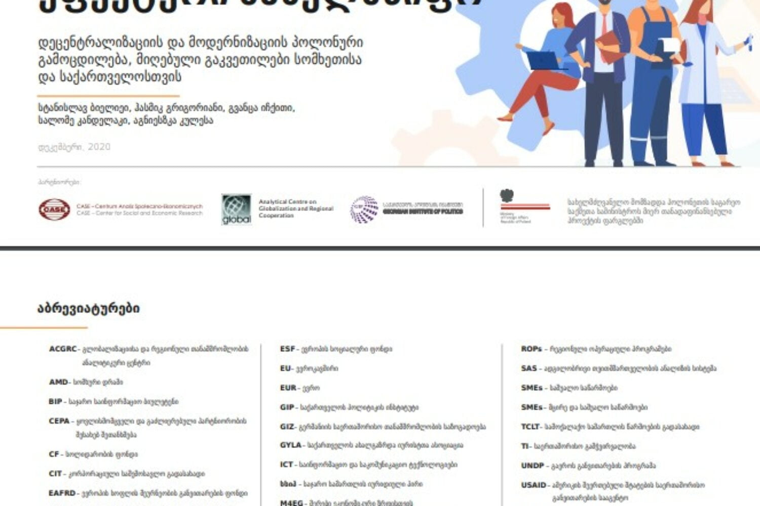 წინამდებარე სახელმძღვანელო შემუშავდა პოლონეთის რესპუბლიკის საგარეო საქმეთა სამინისტროს მიერ თანადაფინანსებული პროექტის „მიმართულება: ეფექტური სახელმწიფო. დეცენტრალიზაციის და მოდერნიზაციის პოლონური გამოცდილება, მიღებული გაკვეთილები სომხეთისა და საქართველოსთვის“ ფარგლებში. ეს გახლავთ სამი პარტნიორი ორგანიზაციის: CASE – სოციალურ-ეკონომიკური კვლევების ცენტრის (ვარშავა), GIP – საქართველოს პოლიტიკის ინსტიტუტის (თბილისი) და ACGRC – გლობალიზაციისა და რეგიონული თანამშრომლობის ანალიტიკური ცენტრის (ერევანი) ერთობლივი ნაშრომი.