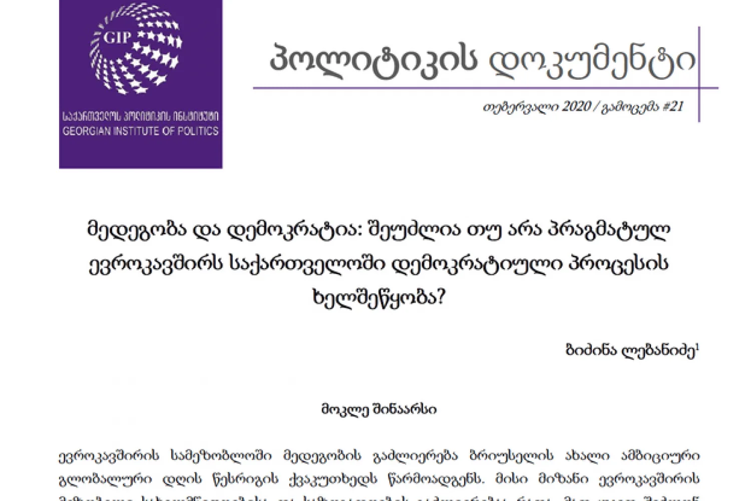 ევროკავშირის სამეზობლოში მედეგობის გაძლიერება ბრიუსელის ახალი ამბიციური გლობალური დღის წესრიგის ქვაკუთხედს წარმოადგენს. მისი მიზანი ევროკავშირის მეზობელი სახელმწიფოებისა და საზოგადოების გაძლიერებაა რათა, მათ უკეთ შეძლონ გამოწვევებსა და კრიზისებზე რეაგირება და სწრაფად ცვალებად პოლტიკურ, სოციალურ და ეკონომიკურ გარემოსთან ადაპტირება.თუმცა, საქართველოსთან დაკავშირებით არსებობს რამდენიმე სასიცოცხლოდ მნიშვნელოვანი საკითხი, რომელთა გადაჭრაც მნიშვნელოვანი იქნება მედეგობის სწორი მიმართულებით წარმართვისთვის. ერთ-ერთი ასეთი საკითხია საზოგადოებრივ მედეგობასა და [ავტოკრატიული] რეჟიმის სტაბილურობას შორის კავშირის სათანადო გამიჯვნა. იმ შემთხვევაში, თუ ევროკავშირი აღნიშნული პრობლემის მოგვარებას ვერ შეძლებს, შესაძლოა მისი მედეგობაზე ორიენტირებული მიდგომა საქართველოში ავტოკრატიის გაძლიერების პოლიტიკად იქცეს და ქვეყნის დემოკრატიზაციის პროცესი კიდევ უფრო მეტად შეარყიოს. მიუხედავად იმისა, რომ წარმოდგენილ ნაშრომში მხოლოდ საქართველოზეა საუბარი, დოკუმენტის ემპირიული და კონცეპტუალური მიგნებები ასევე რელევანტურია ევროკავშირის ურთიერთობებისთვის აღმოსავლეთ პარტნიორობის ორ სხვა ასოცირებულ ქვეყანასთან – უკრაინასა და მოლდოვასთან.