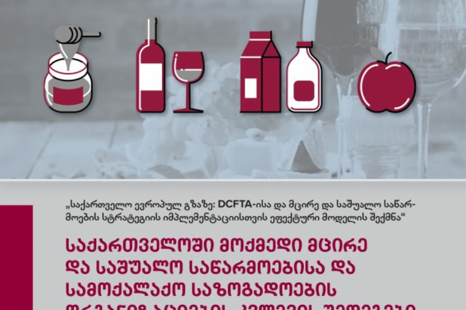 წინამდებარე პუბლიკაცია წარმოადგენს პროექტის – „საქართველო ევროპულ გზაზე: DCFTA-ისა და მცირე და საშუალო საწარმოების სტრატეგიის იმპლემენტაციისთვის ეფექტური მოდელის შექმნა“ – ნაწილს. პროექტი 2017 წლის აპრილში დაიწყო და 2019 წლის გაზაფხულამდე გაგრძელდება და ევროკავშირსა და საქართველოს შორის დადებული ხელშეკრულებით – „ღრმა და ყოვლისმომცველი თავისუფალი სავაჭრო სივრცე“ – უზრუნველყოფილი შესაძლებლობების შესახებ ინფორმირებულობის ნაკლებობას ეხება. პროექტის მიზანია საქართველოს სამოქალაქო საზოგადოების ორგანიზაციების (CSO) როლის გაზრდა ქვეყნის მასშტაბით DCFTA-ის/SME-ების შესახებ წარმოებულ კამპანიებში;მათი უნარების გაძლიერება ადგილობრივი მცირე და საშუალო ზომის საწარმოების ევროკავშირის ერთიან ბაზარზე წვდომისთვის მოსამზადებლად საჭირო დახმარების გასაწევად.