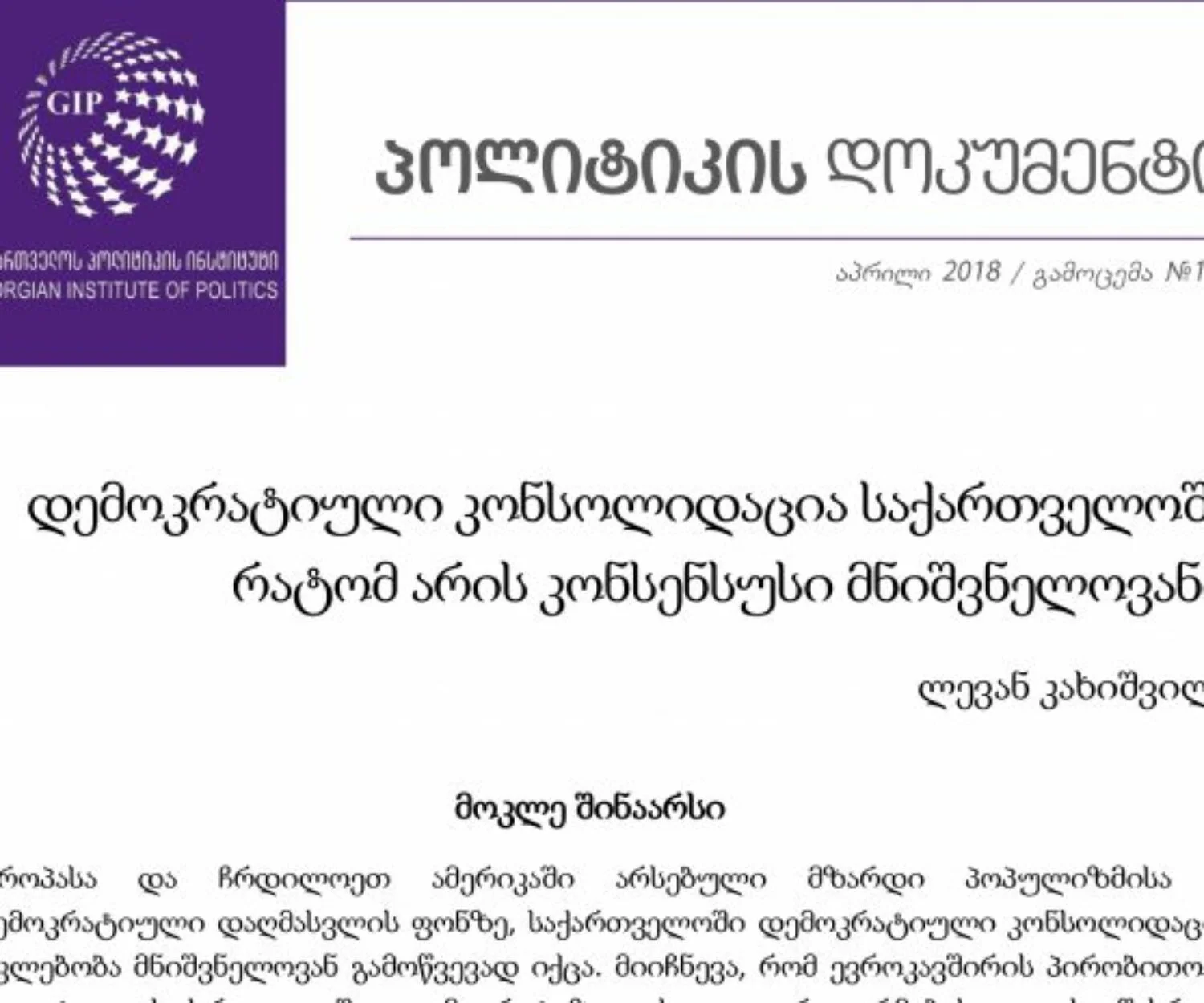 კატეგორიის გარეშე 05 აპრ 2018 დემოკრატიული კონსოლიდაცია საქართველოში: რატომ არის კონსენსუსი მნიშვნელოვანი?ევროპასა და ჩრდილოეთ ამერიკაში არსებული მზარდი პოპულიზმისა და დემოკრატიული დაღმასვლის ფონზე, საქართველოში… GIP