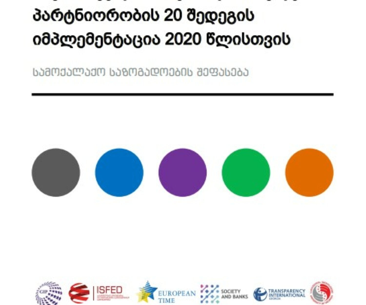 სიახლეები 15 ივლ 2020 GIP-იმ ანგარიშის “საქართველოს მიერ აღმოსავლეთ პარტნიორობის 20 შედეგის იმპლემენტაცია 2020 წლისთვის” პრეზენტაცია გამართა9 ივლისს, საქართველოს პოლიტიკის ინსტიტუტმა (GIP) სამართლიანი არჩევნებისა და დემოკრატიის საერთაშორისო საზოგადოებასთან… GIP