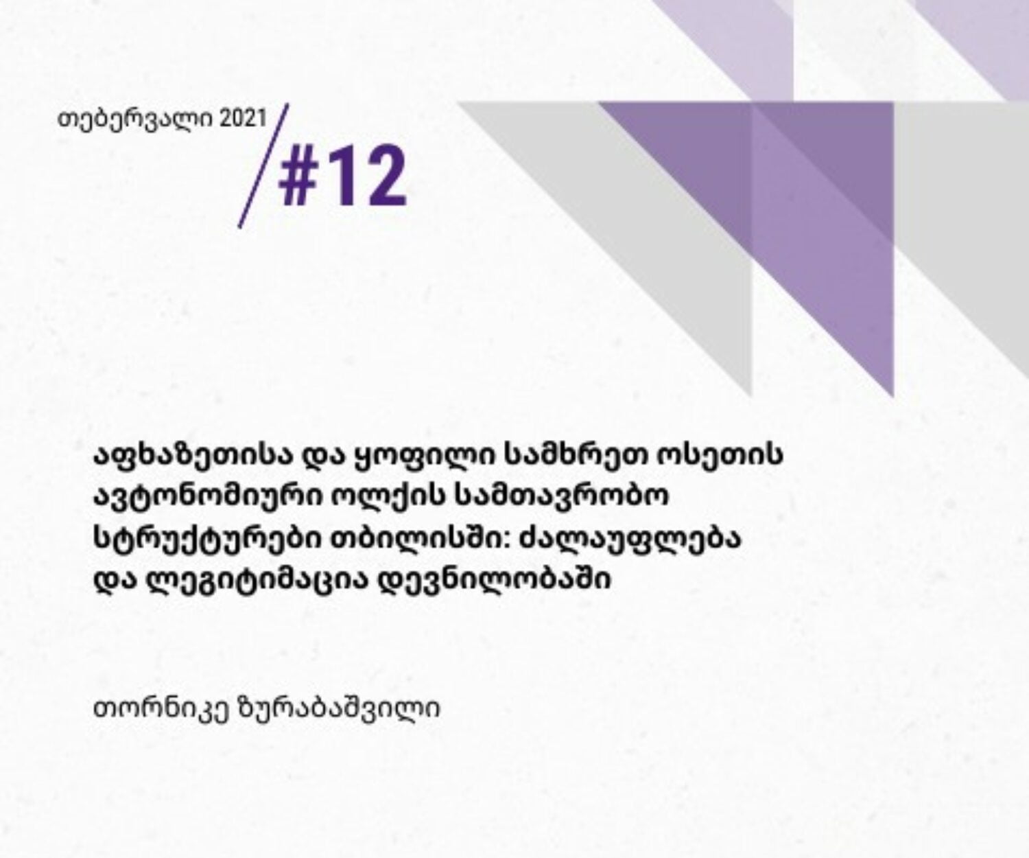 კატეგორიის გარეშე 01 მარ 2021 აფხაზეთისა და ყოფილი სამხრეთ ოსეთის ავტონომიური ოლქის სამთავრობო სტრუქტურები თბილისში: ძალაუფლება და ლეგიტიმაცია დევნილობაშიკვლევითი ნაშრომი, თებერვალი 2021 / #12 GIP