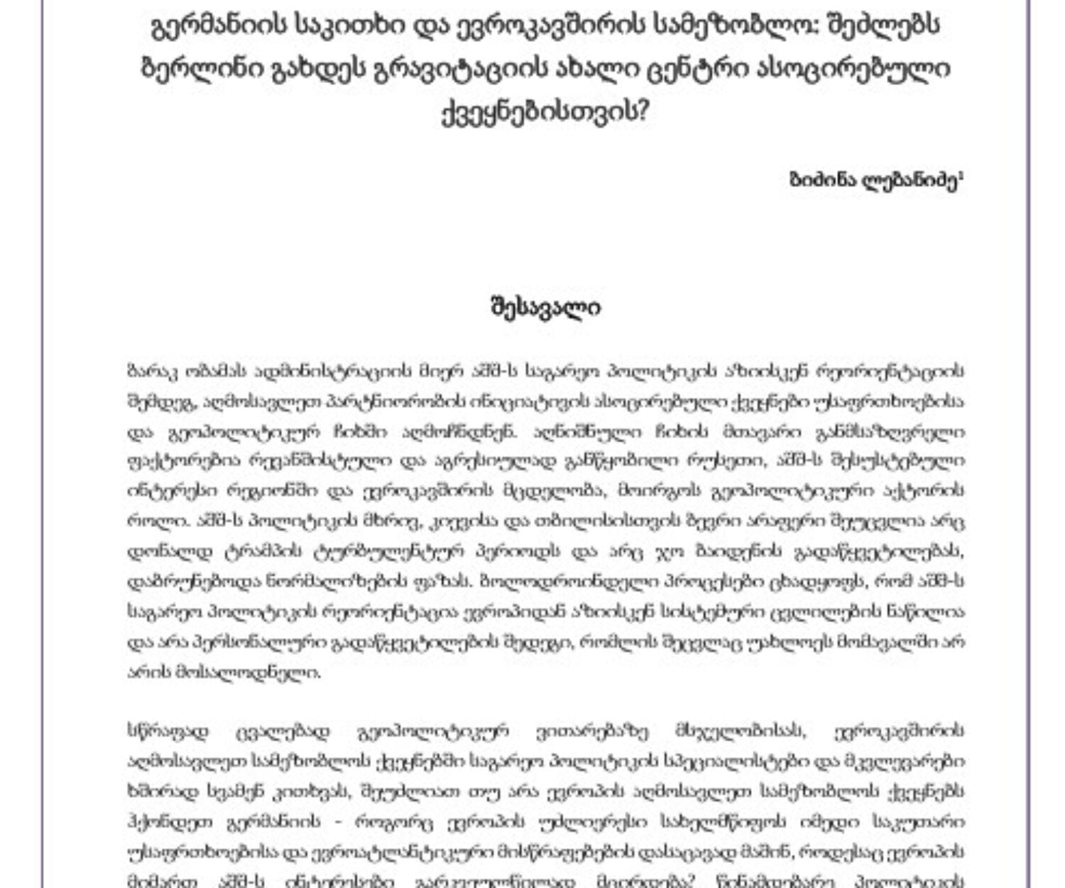 კატეგორიის გარეშე 20 ივლ 2021 გერმანიის საკითხი და ევროკავშირის სამეზობლო: შეძლებს ბერლინი გახდეს გრავიტაციის ახალი ცენტრი ასოცირებული ქვეყნებისთვის?ბარაკ ობამას ადმინისტრაციის მიერ აშშ-ს საგარეო პოლიტიკის აზიისკენ რეორიენტაციის შემდეგ, აღმოსავლეთ პარტნიორობის… GIP
