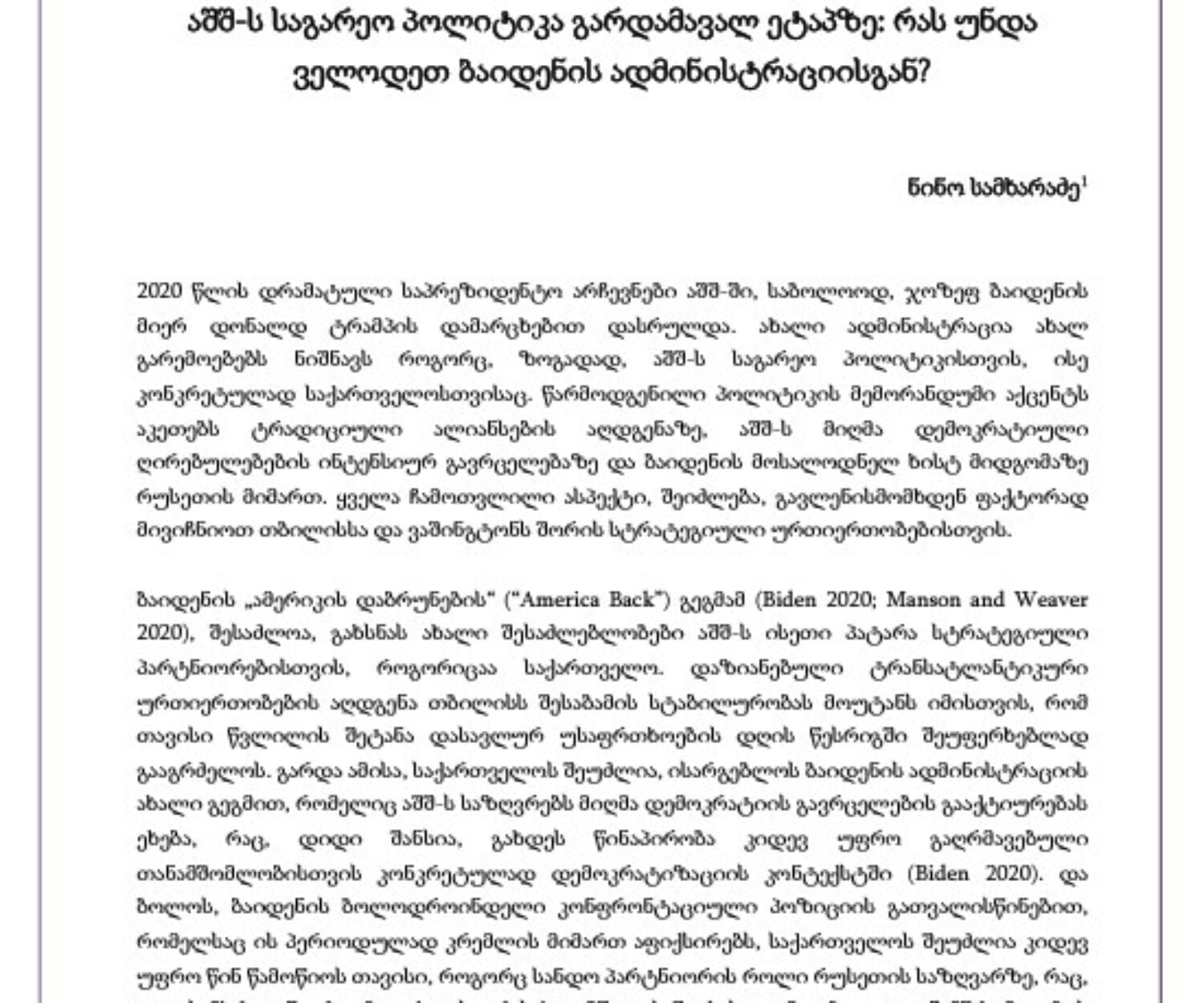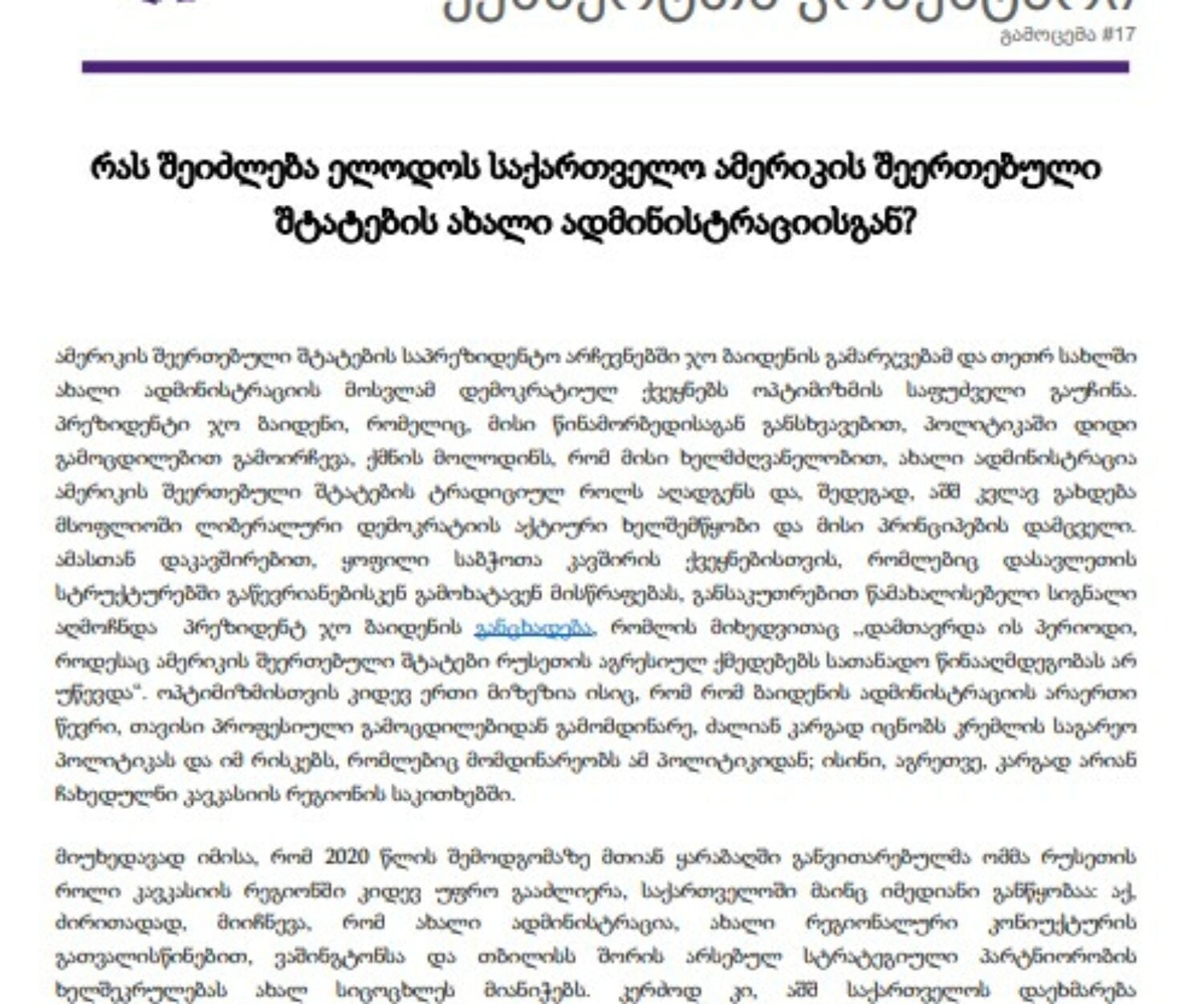 კატეგორიის გარეშე 02 ივნ 2021 რას შეიძლება ელოდოს საქართველო ამერიკის შეერთებული შტატების ახალი ადმინისტრაციისგან?ექსპერტთა კომენტარი #17 | ივნისი 2021 GIP