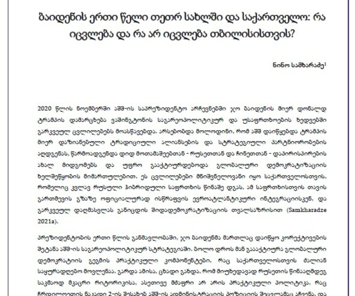 კატეგორიის გარეშე 16 ნოე 2021 ბაიდენის ერთი წელი თეთრ სახლში და საქართველო: რა იცვლება და რა არ იცვლება თბილისისთვის?2020 წლის ნოემბერში აშშ-ის საპრეზიდენტო არჩევნებში ჯო ბაიდენის მიერ დონალდ ტრამპის დამარცხება… ნინო სამხარაძე