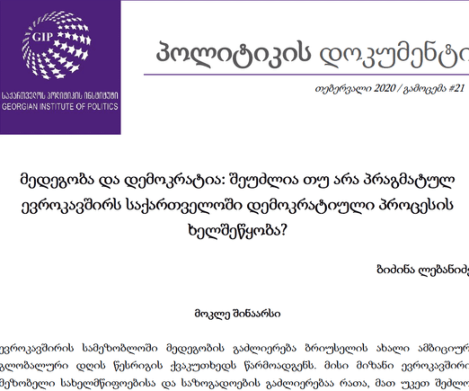 კატეგორიის გარეშე 17 თებ 2020 მედეგობა და დემოკრატია: შეუძლია თუ არა პრაგმატულ ევროკავშირს საქართველოში დემოკრატიული პროცესის ხელშეწყობა?ევროკავშირის სამეზობლოში მედეგობის გაძლიერება ბრიუსელის ახალი ამბიციური გლობალური დღის წესრიგის ქვაკუთხედს წარმოადგენს. GIP