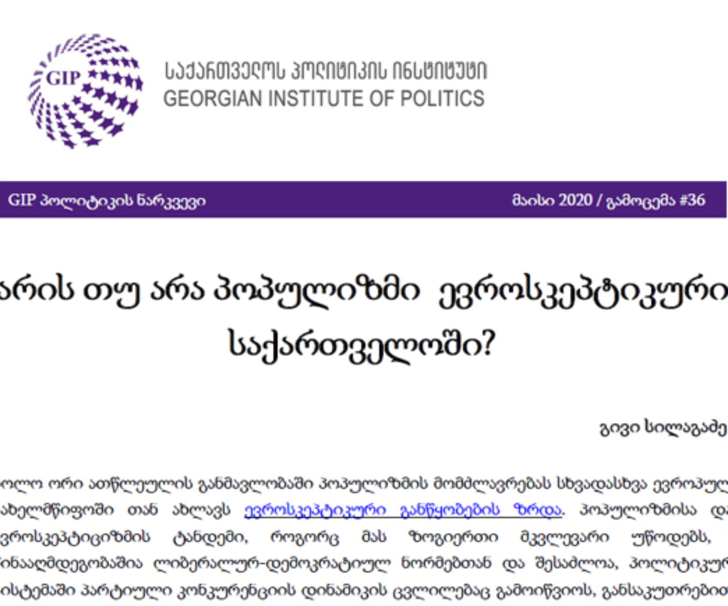 კატეგორიის გარეშე 22 მაი 2020 არის თუ არა პოპულიზმი ევროსკეპტიკური საქართველოში?ბოლო ორი ათწლეულის განმავლობაში პოპულიზმის მომძლავრებას სხვადასხვა ევროპულ სახელმწიფოში თან ახლავს ევროსკეპტიკური განწყობების… GIP