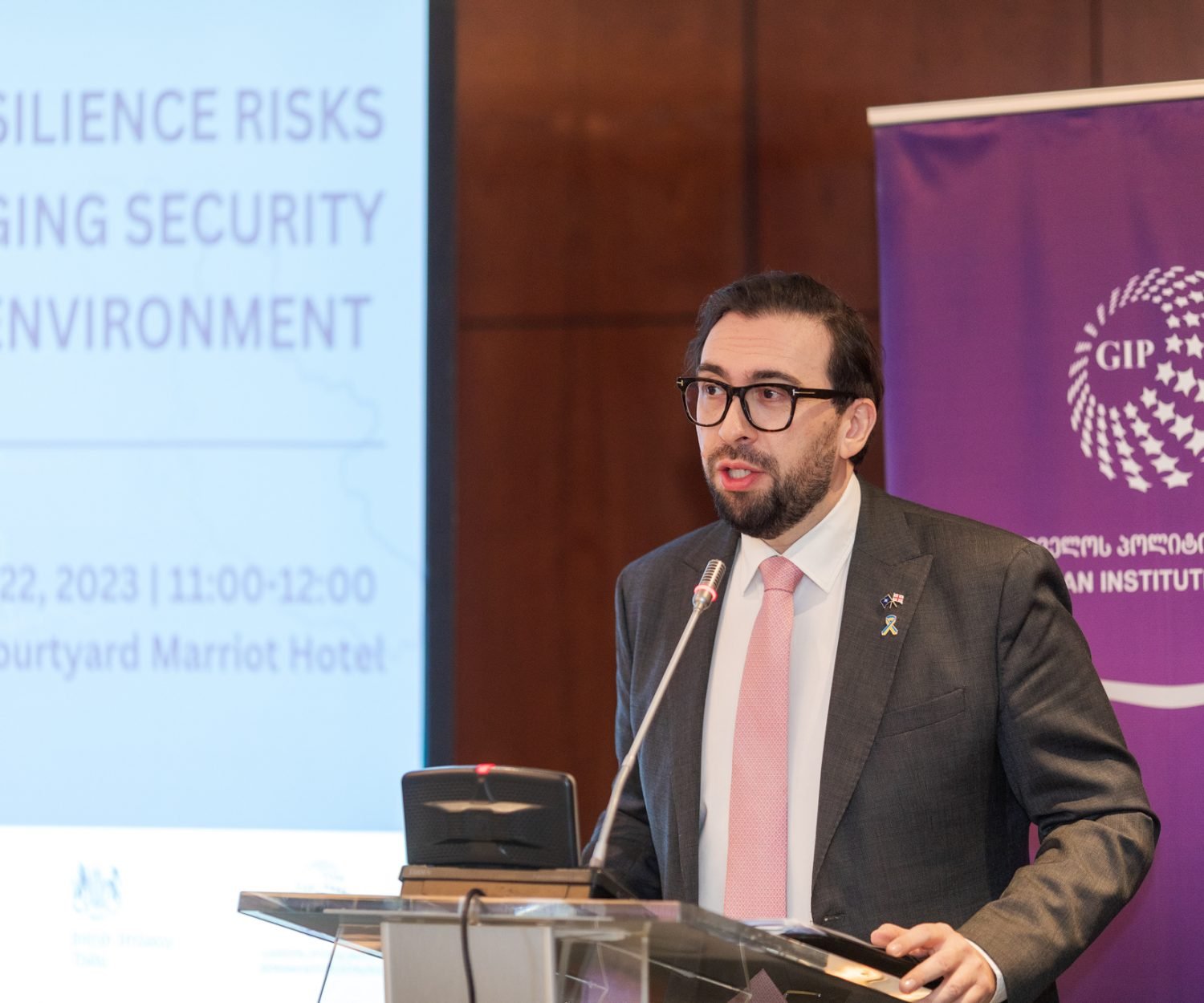 სიახლეები 24 ნოე 2023 საქართველოს მედეგობის რისკების შეფასება ცვალებად უსაფრთხოების გარემოშიღონისძიებაზე საქართველოს პოლიტიკის ინსტიტუტმა წარადგინა ახალი პოლიტიკის დოკუმენტი სახელწოდებით "რუსეთისგან მომავალი რისკების… GIP