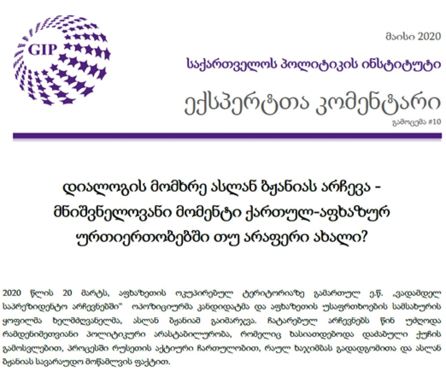 კატეგორიის გარეშე 18 მაი 2020 დიალოგის მომხრე ასლან ბჟანიას არჩევა – მნიშვნელოვანი მომენტი ქართულ-აფხაზურ ურთიერთობებში თუ არაფერი ახალი?ექსპერტთა კომენტარი #10 | მაისი 2020 GIP