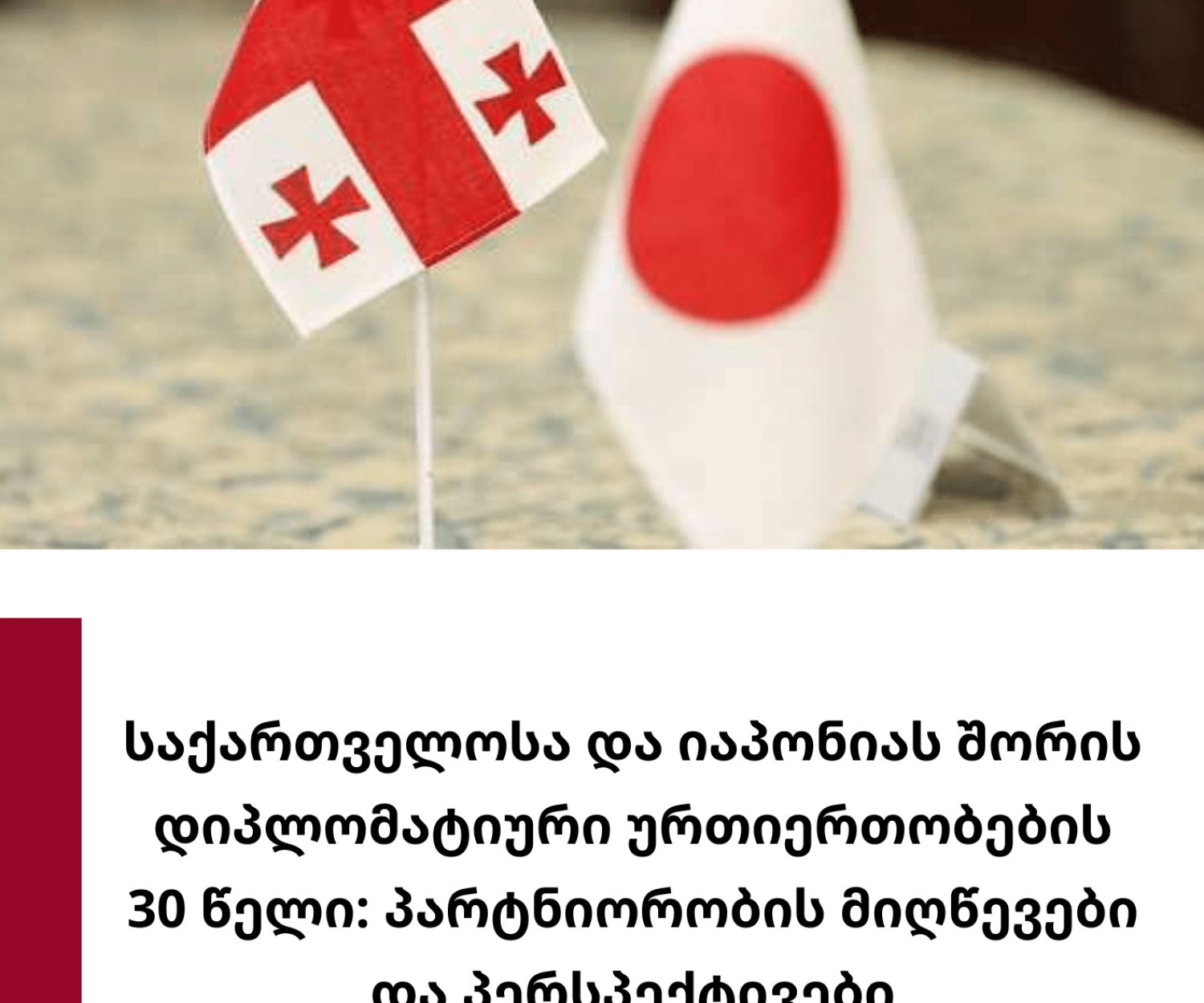 კატეგორიის გარეშე 06 სექ 2022 საქართველოსა და იაპონიას შორის დიპლომატიური ურთიერთობების 30 წელი: პარტნიორობის მიღწევები და პერსპექტივებიიაპონურ-ქართული პარტნიორობა, საქართველოში არსებული სოციო-პოლიტიკური და ეკონომიკური არასტაბილურობის, ეთნიკური კონფლიქტების და ორმხრივი… GIP