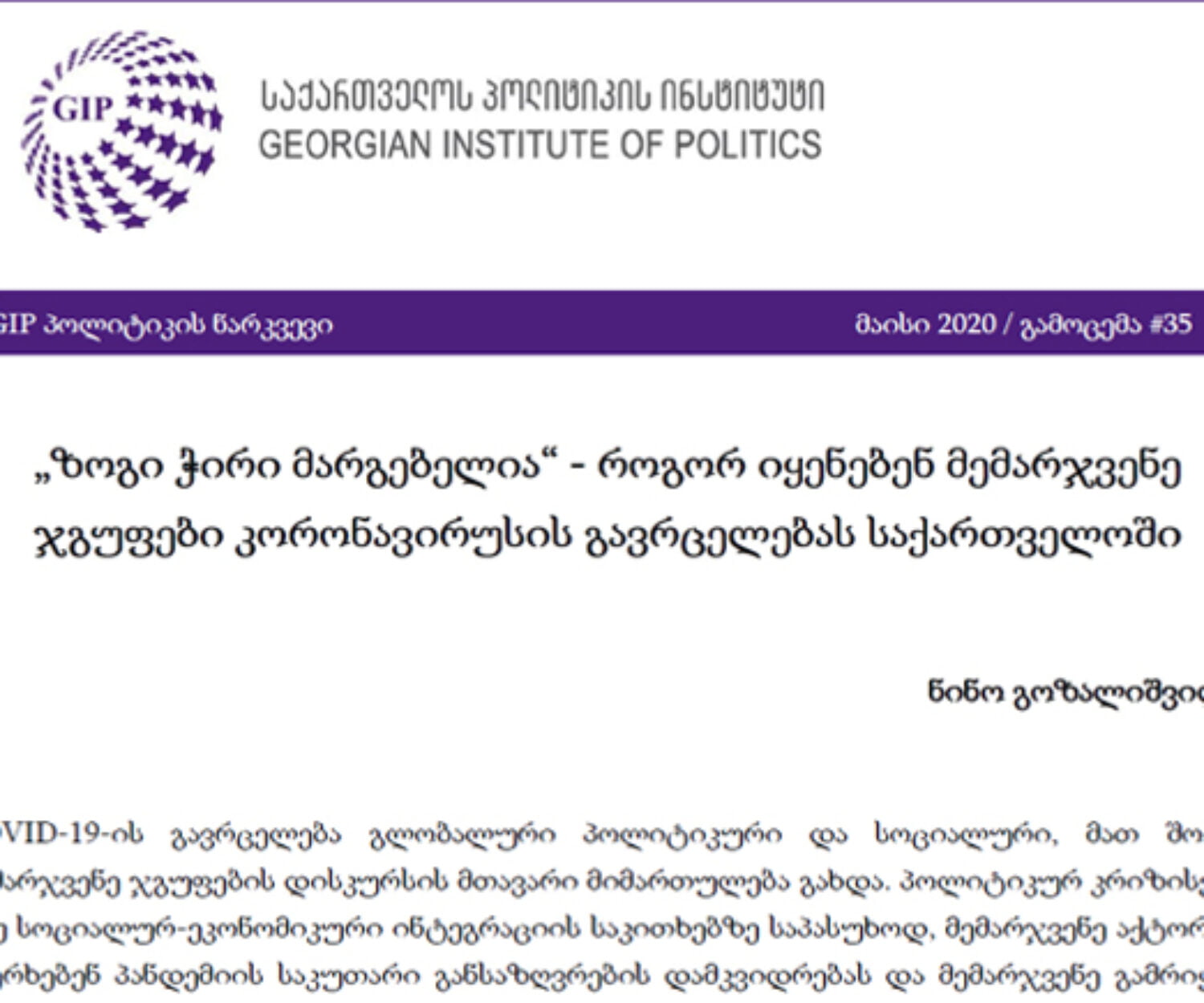 კატეგორიის გარეშე 06 მაი 2020 „ზოგი ჭირი მარგებელია“ – როგორ იყენებენ მემარჯვენე ჯგუფები კორონავირუსის გავრცელებას საქართველოშიCOVID-19-ის გავრცელება გლობალური პოლიტიკური და სოციალური, მათ შორის მემარჯვენე ჯგუფების დისკურსის მთავარი… GIP