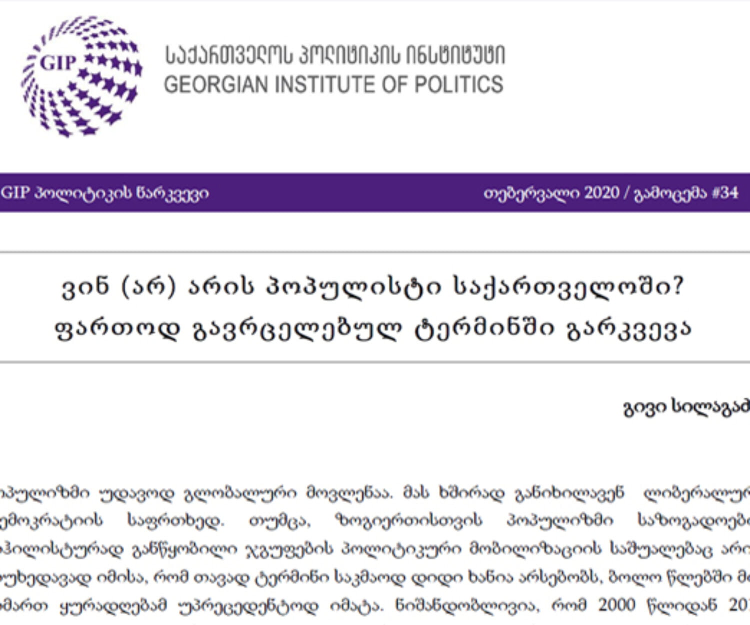 კატეგორიის გარეშე 24 თებ 2020 ვინ (არ) არის პოპულისტი საქართველოში? ფართოდ გავრცელებულ ტერმინში გარკვევამიუხედავად მისი გლობალური მნიშვნელობისა, ,,პოპულიზმის“ გამოყენება როგორც სხვა ქვეყნების, ისე საქართველოს კონტექსტში… GIP