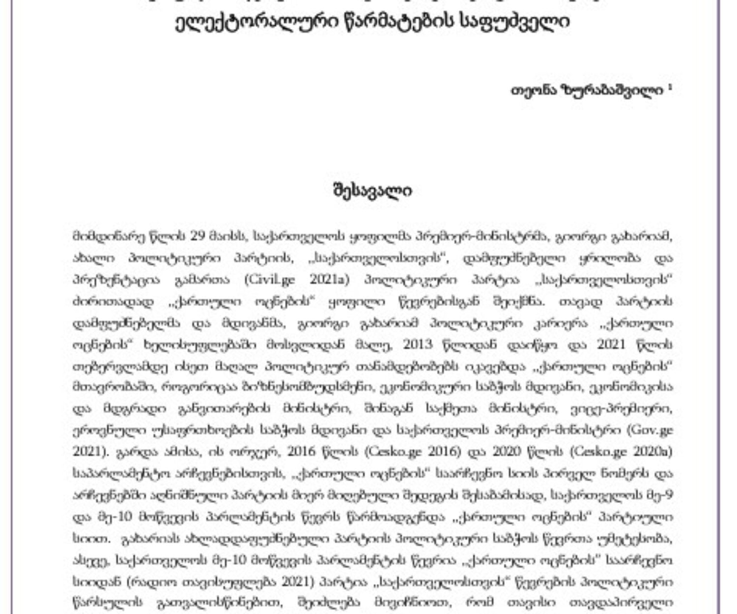 კატეგორიის გარეშე 21 ივნ 2021 პარტიული იდენტობა, როგორც ,,განაყოფი“ პარტიების ელექტორალური წარმატების საფუძველიმემორანდუმში განხილული სხვა ,,განაყოფი“ პარტიების გამოცდილებამ აჩვენა, რომ მნიშვნელოვანი ელექტორალური წარმატებისთვის საჭიროა,… თეონა ზურაბაშვილი