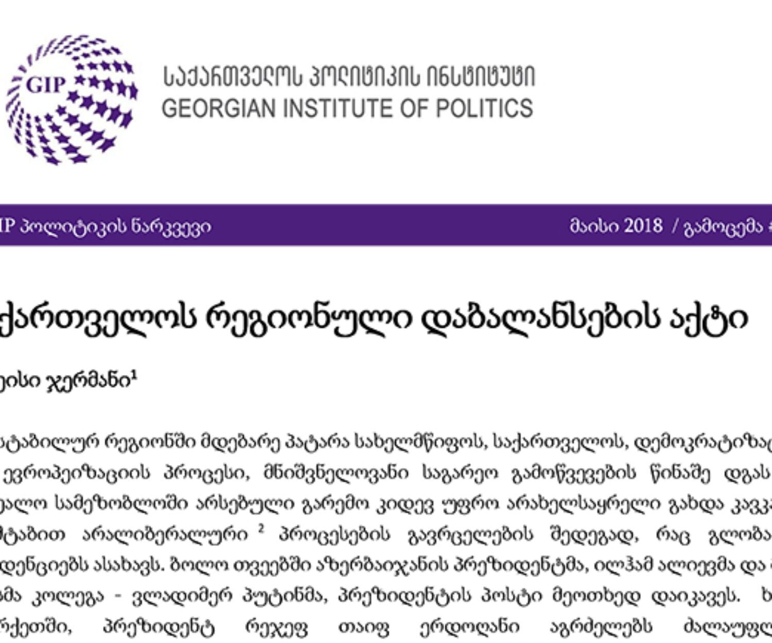 კატეგორიის გარეშე 30 აპრ 2018 საქართველოს რეგიონული დაბალანსების აქტიარასტაბილურ რეგიონში მდებარე პატარა სახელმწიფოს, საქართველოს, დემოკრატიზაციისა და ევროპეიზაციის პროცესი, მნიშვნელოვანი საგარეო… GIP