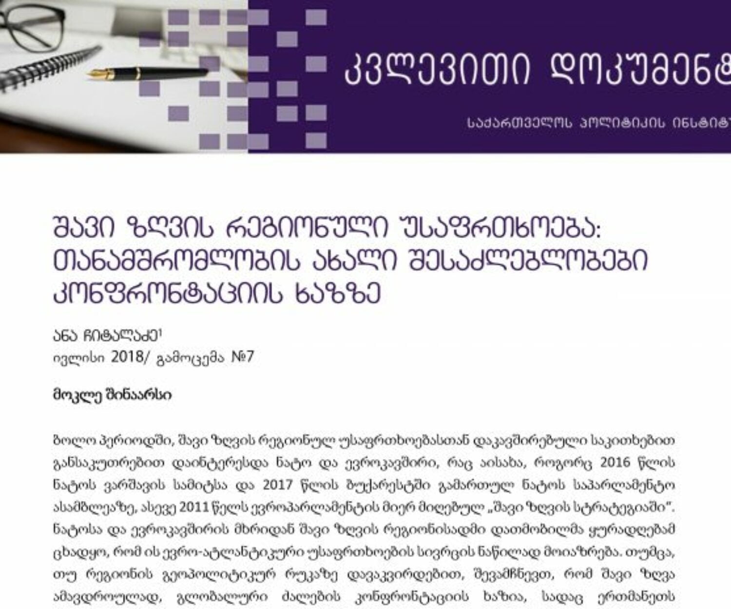 კატეგორიის გარეშე 07 აპრ 2018 შავი ზღვის რეგიონული უსაფრთხოება: თანამშრომლობის ახალი შესაძლებლობები კონფრონტაციის ხაზზებოლო პერიოდში, შავი ზღვის რეგიონულ უსაფრთხოებასთან დაკავშირებული საკითხებით განსაკუთრებით დაინტერესდა ნატო და… GIP