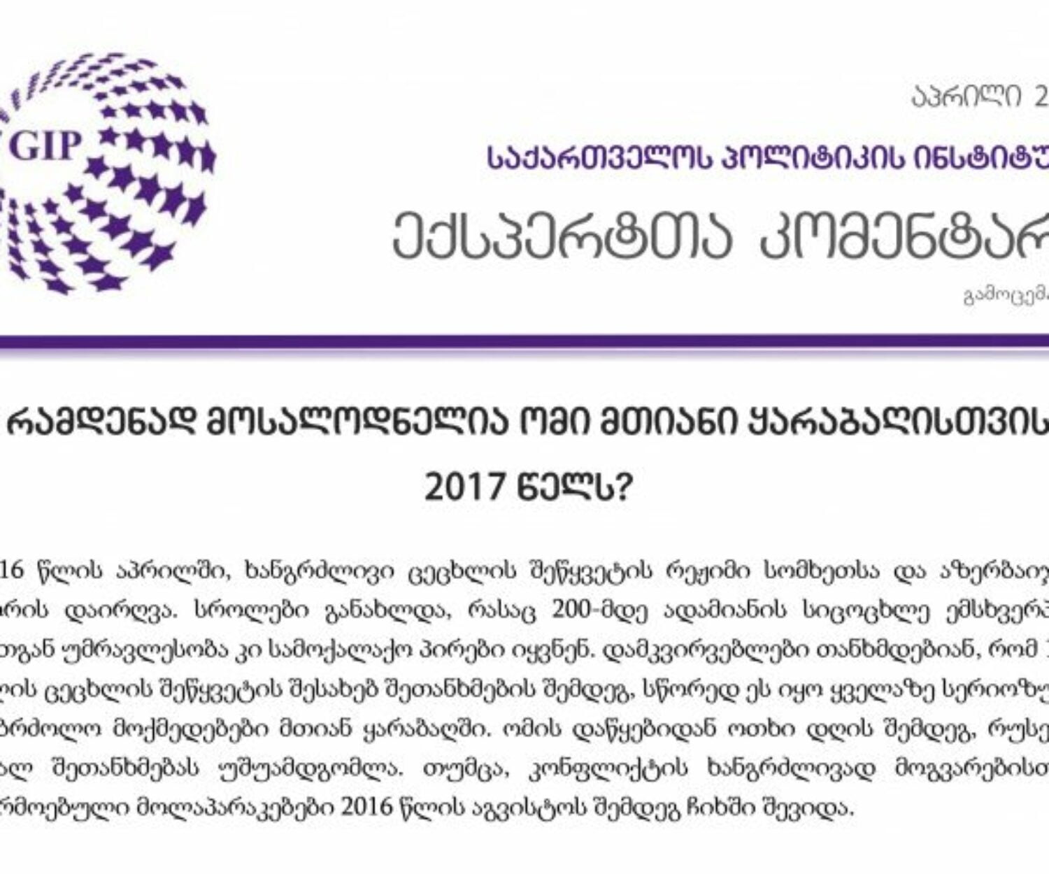 ბლოგი 06 აპრ 2017 ომი მთიან ყარაბაღში: რას შეიძლება ნიშნავდეს ის საქართველოსთვის?2017 წლის 2 აპრილს 1 წელი გავიდა მას შემდეგ, რაც მთიანი ყარაბაღის… GIP