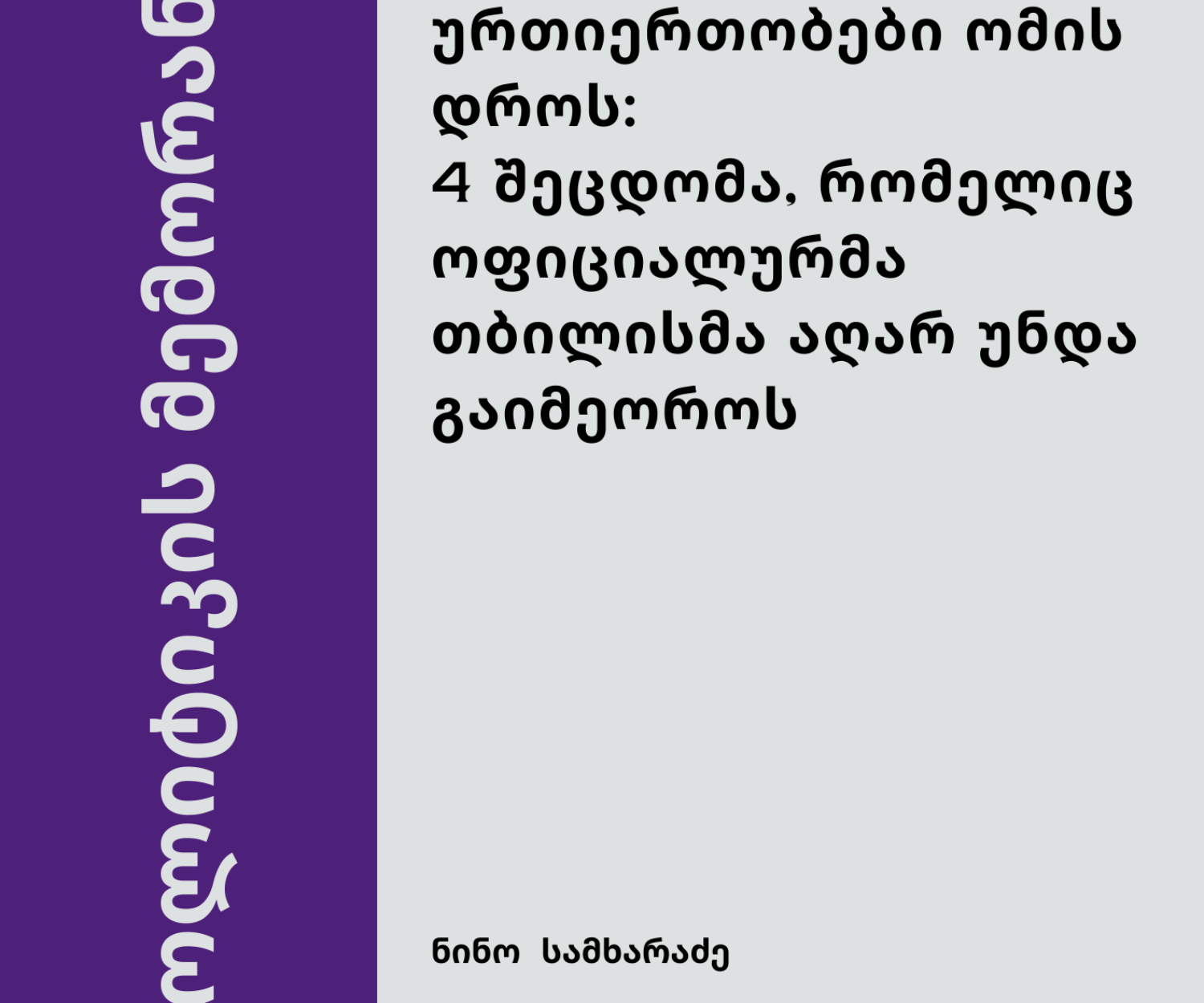 კატეგორიის გარეშე 21 აპრ 2022 საქართველო-უკრაინის ურთიერთობები ომის დროს: 4 შეცდომა, რომელიც ოფიციალურმა თბილისმა აღარ უნდა გაიმეოროსუკრაინაში რუსეთის შეჭრის შედეგად განვითარებული პროცესები - გეოპოლიტიკური ცვლილებები შავი ზღვის რეგიონსა… ნინო სამხარაძე